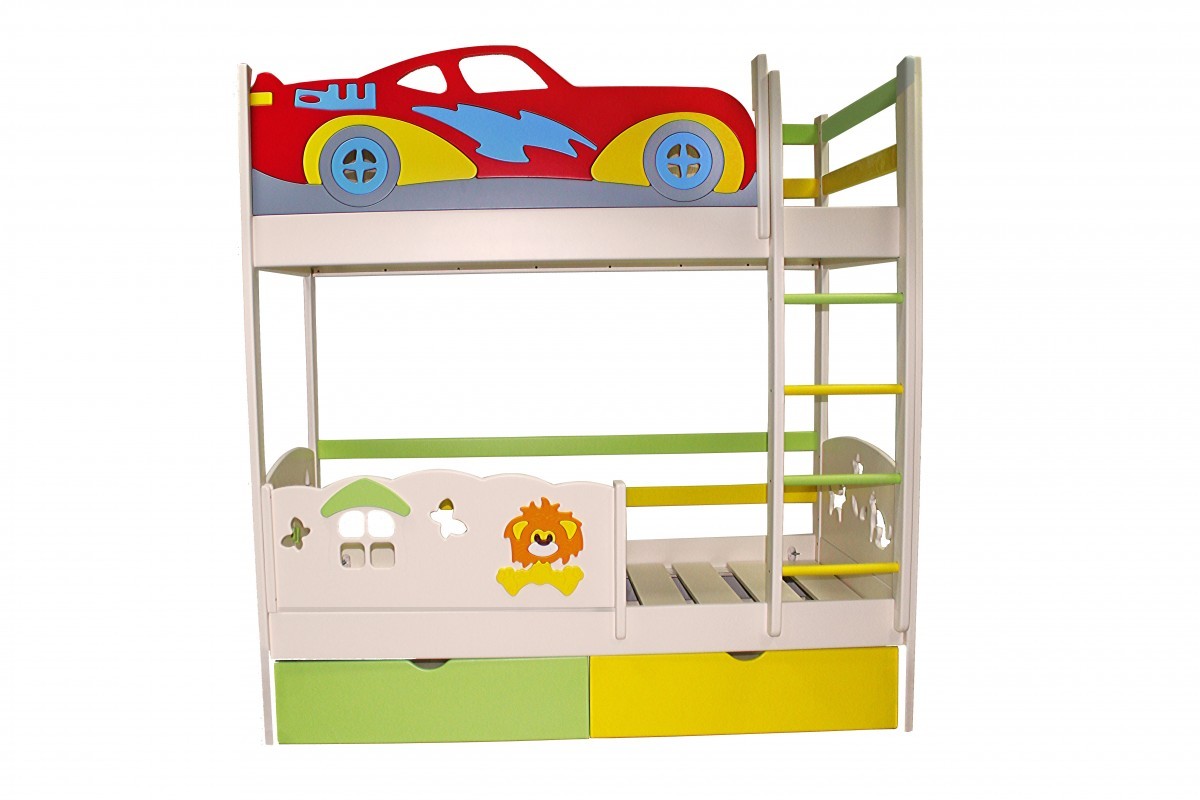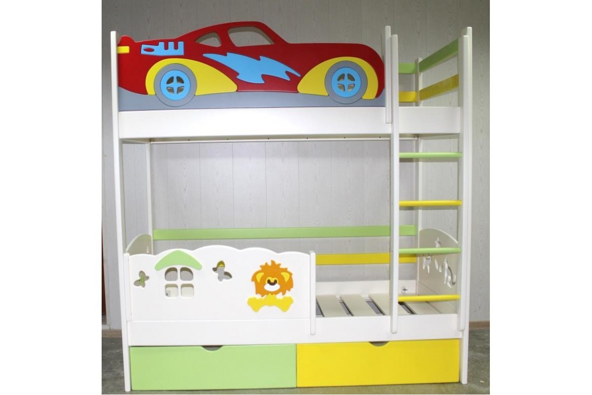 Детская двухъярусная кровать Тачка со львёнком, Bambini Letto