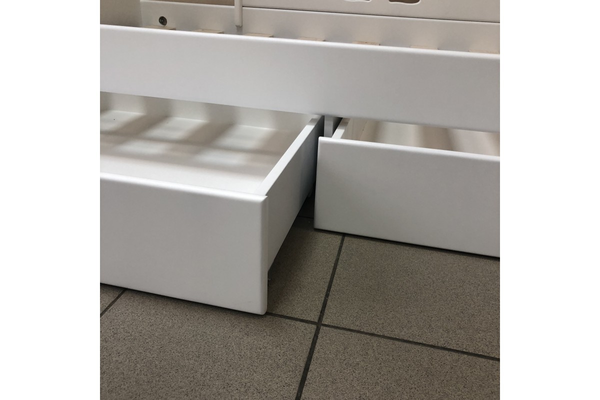 Родителей порадует, что кровать абсолютно безопасна, в ее конструкции нет острых углов. Кровать выполнена из дерева МДФ высшей категории. Окрашена сертифицированной экологической влагостойкой красой для детских учреждений без запаха. Такая покраска не вызовет аллергии у ребенка, и упростит уход за изделием.