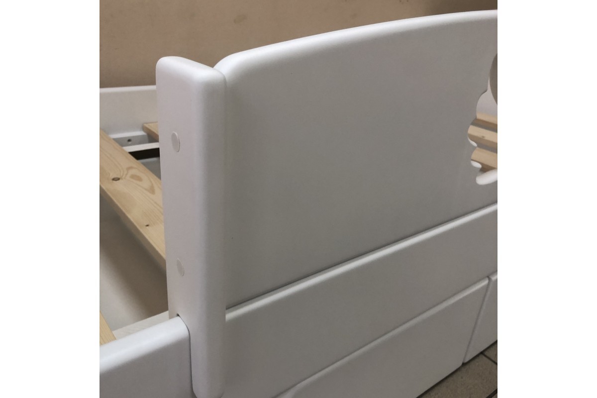 Кровать выполнена из дерева МДФ высшей категории. Окрашена сертифицированной