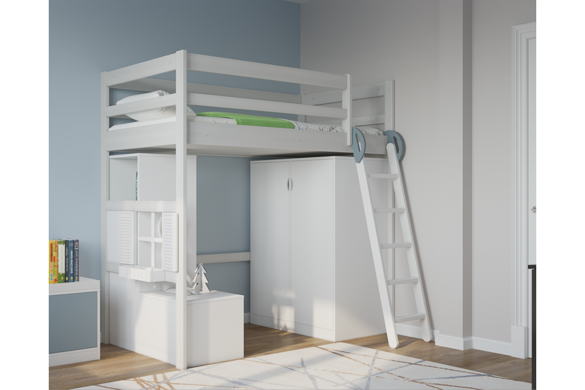 Самой важной функцией кровати-чердака является возможность использовать пространство под ней. Вы можете разместить письменный стол, организовать детскую гардеробную, игровую или установить небольшой диван.