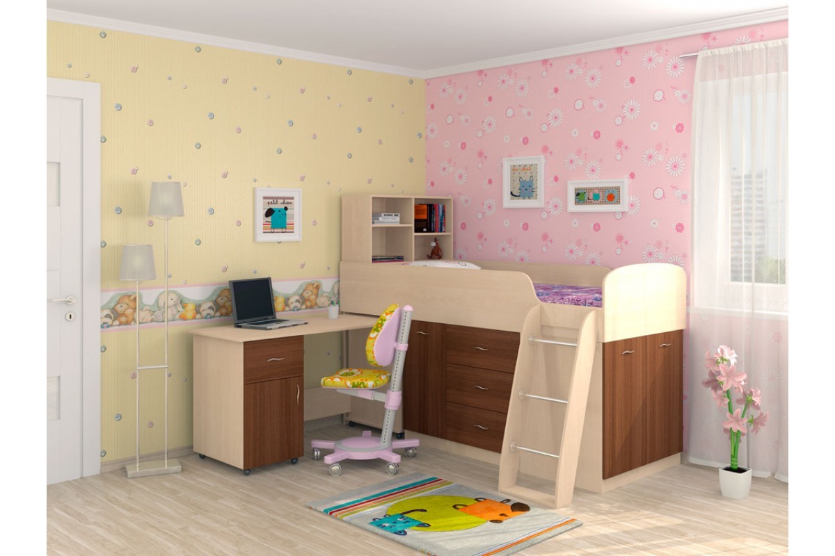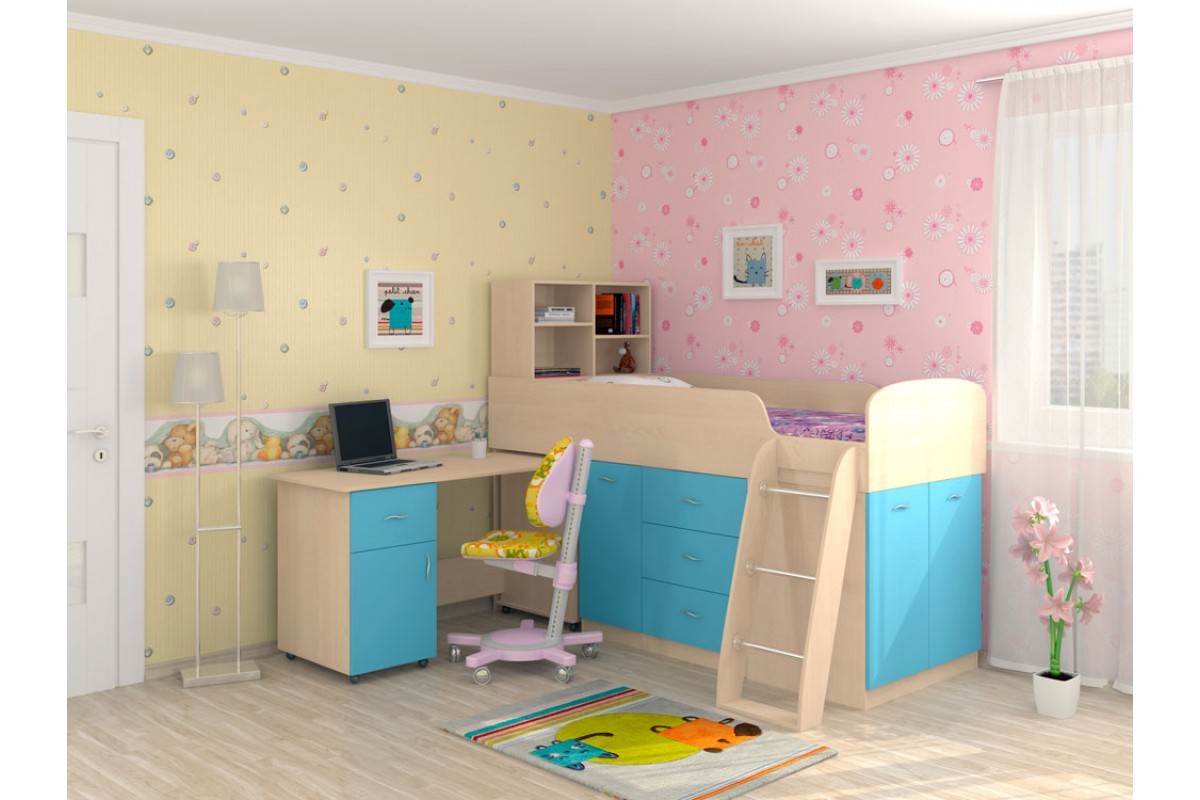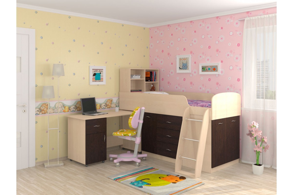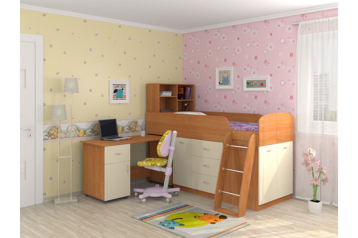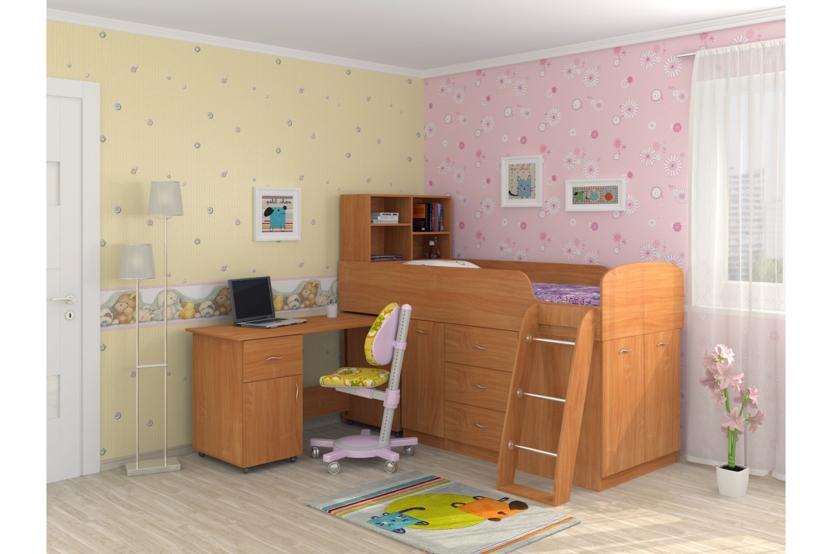 Такой комплект мебели обеспечит разумную экономию пространства в вашем доме и полностью обеспечит выполнение всех функций детской и подростковой комнаты.