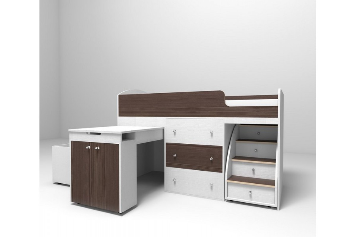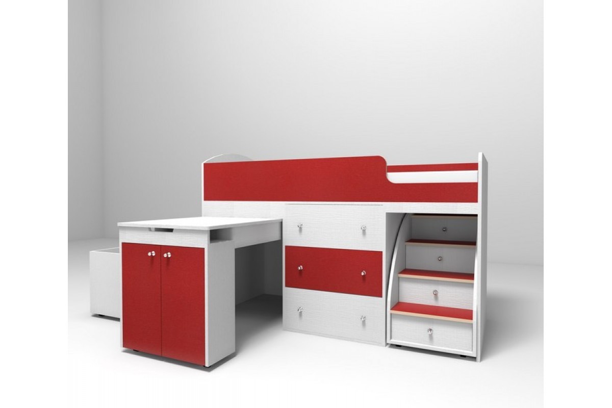Она отлично смотрится в любом интерьере благодаря богатому выбору цветовых решений от спокойных натуральных цветов ольхи, бука и ореха до ярких красного, зеленого, розового и ириса. Кровать-чердак спроектирована таким образом, чтобы максимально экономить пространство квартиры.