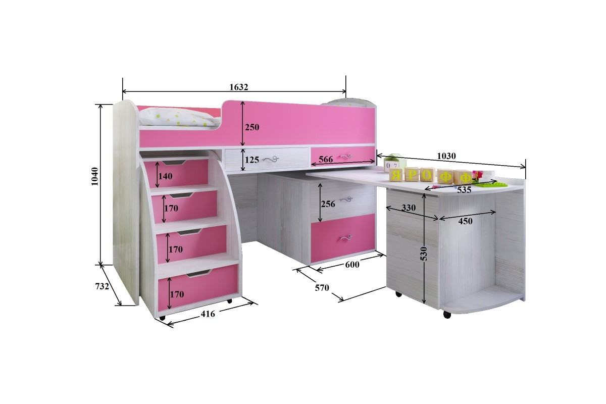 Обустройство детской комнаты, а особенно если это – пространство, в котором живет девочка, требует тщательного подхода, ведь необходимо учесть не только оптимальные размер и функциональные возможности мебели для детской, но также и пожелания ее обитательницы. Кровать-чердак «Малыш 6» от ЯРОФФ в Москве органично впишется в интерьер детской комнаты детской для девочки, не займет много места и не станет загромождать пространство благодаря своим компактным размерам. Несмотря на небольшие габариты, в ней имеется все необходимое для рационального использования пространства: удобное спальное место и различные ящики для размещения постельного белья, одежд и других необходимых вещей.