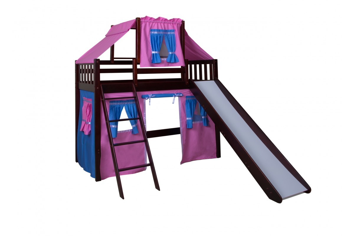 Внизу маленькая принцесса сможет организовать уютный уголок для игр или рабочее место. Ей будет очень весело спускаться вниз с горки к родителям после длинной ночи, проведенной в собственном домике наверху.