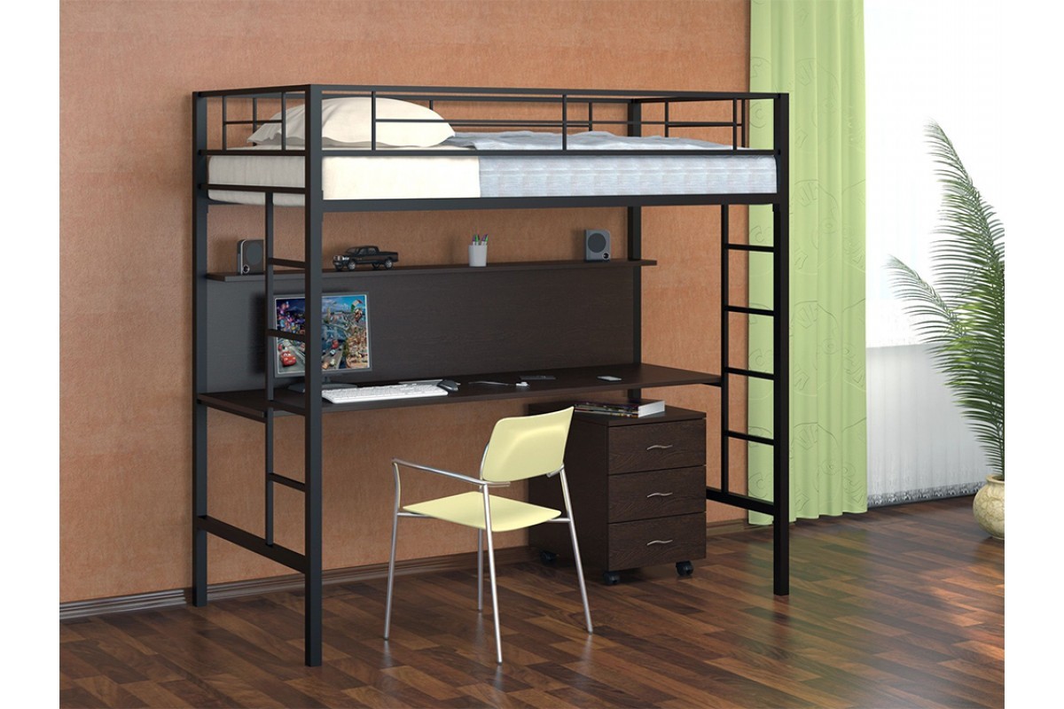 Металлическая кровать-чердак от производителя "Формула мебели" способна выдерживать нагрузку до 150 кг, что делает ее подходящей как для детей, так и для взрослых. В отличие от кроватей из ЛДСП выглядит менее громоздкой. Свободную зону под кроватью можно оформить как игровую или создать рабочее место, что позволит сэкономить пространство в помещении.