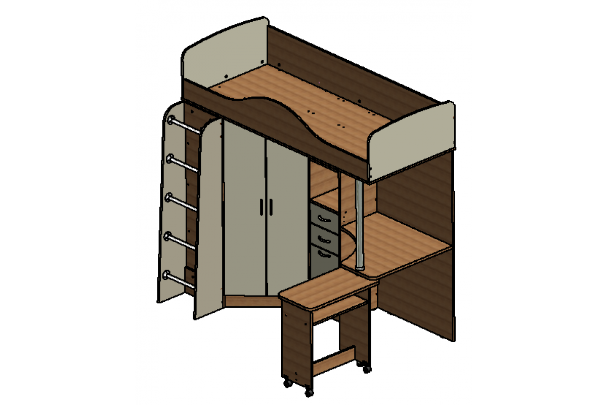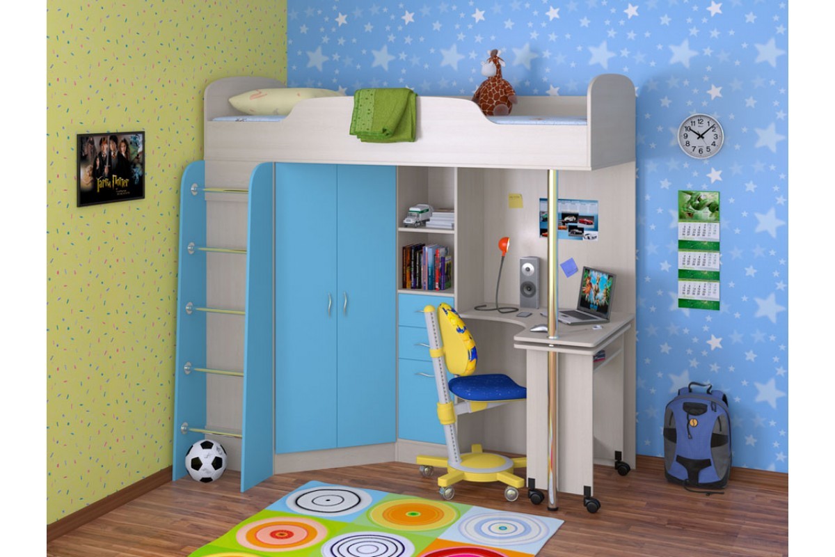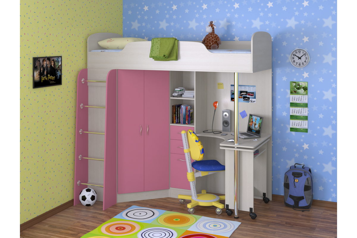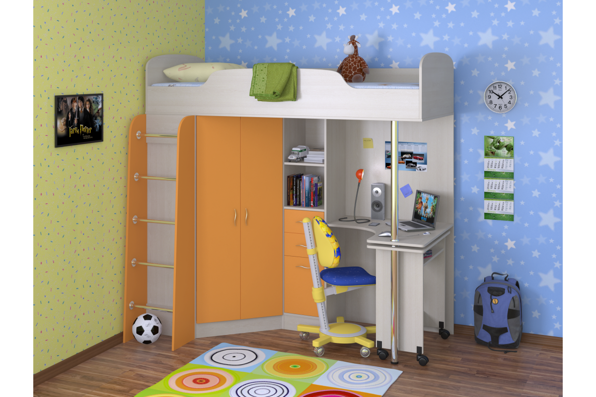 Представляет собой самодостаточный комплекс включающий в себя зону для сна, шкаф-пенал и полноценный рабочий стол. Прочная конструкция рассчитана на детей от 3 до 16 лет. Такая детская обеспечит разумную экономию пространства в вашем доме и полностью обеспечит выполнение всех многообразных функций детской и подростковой комнаты.