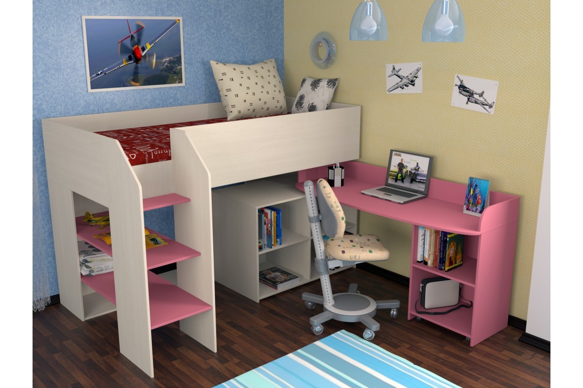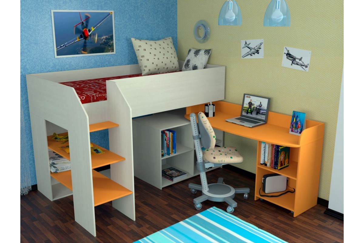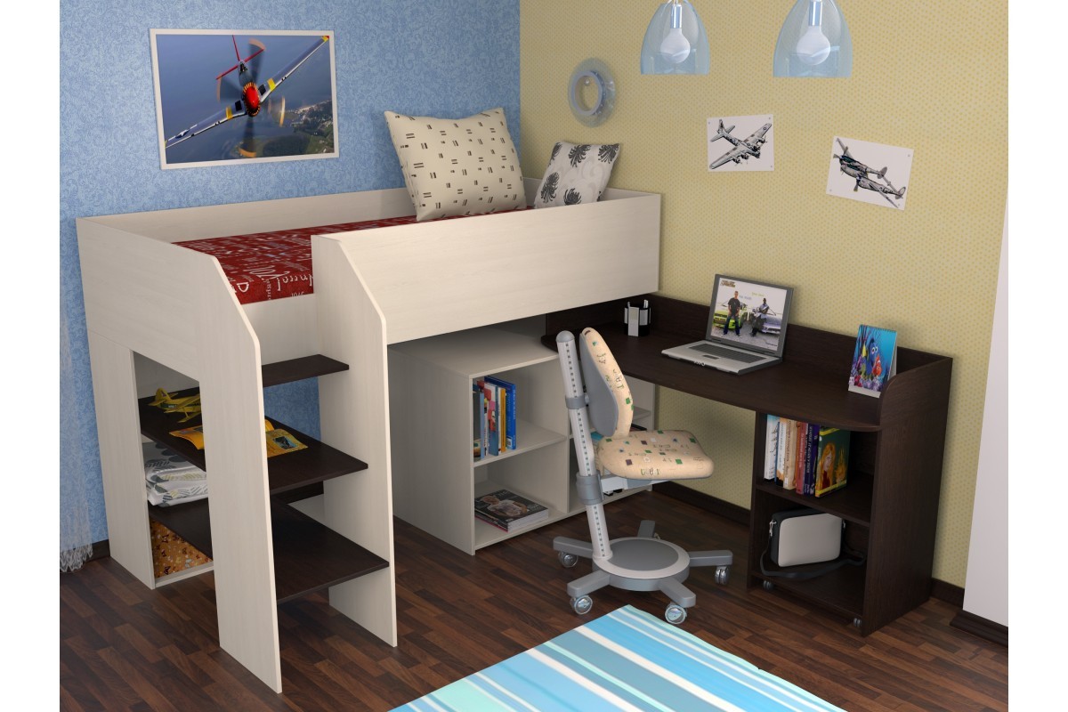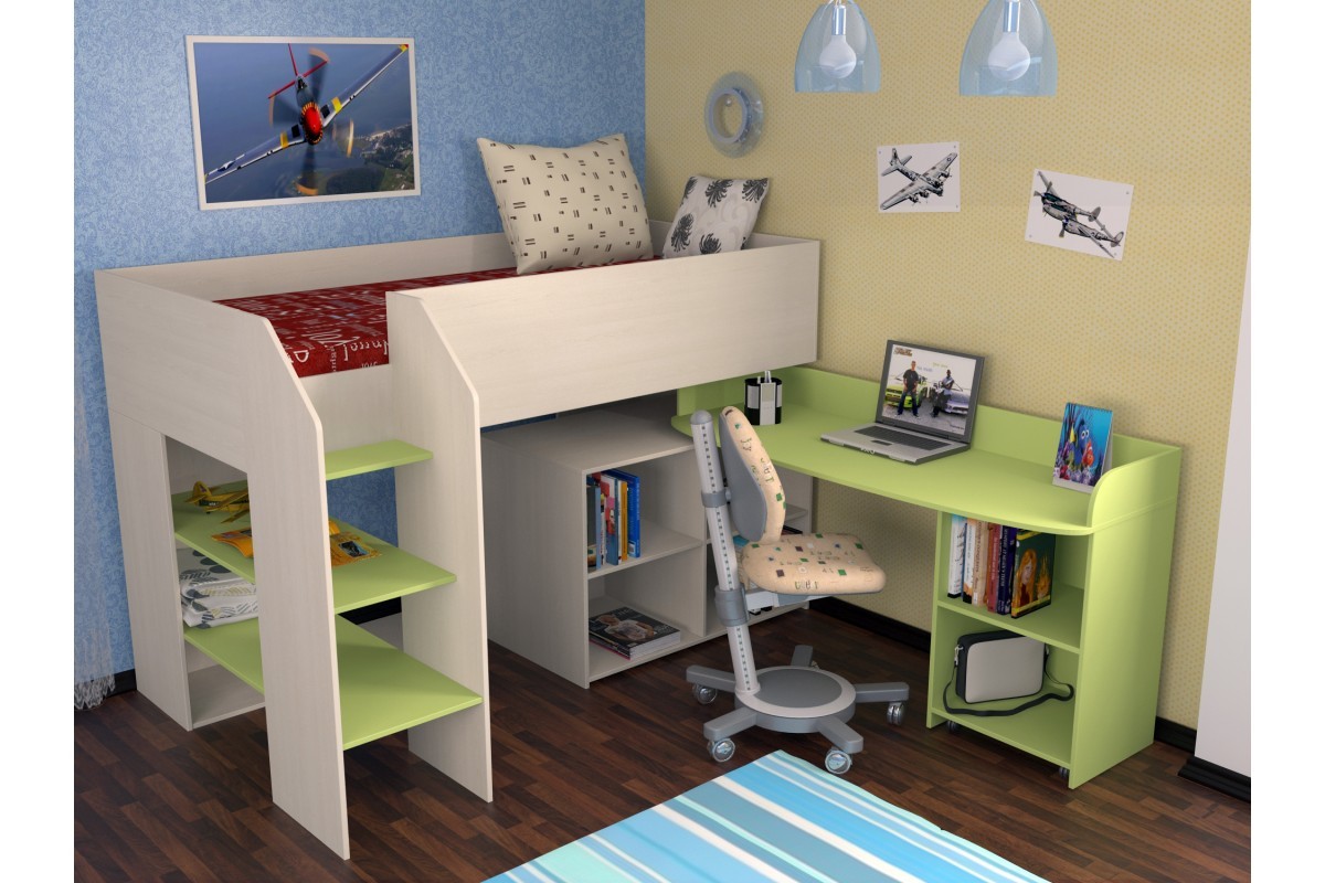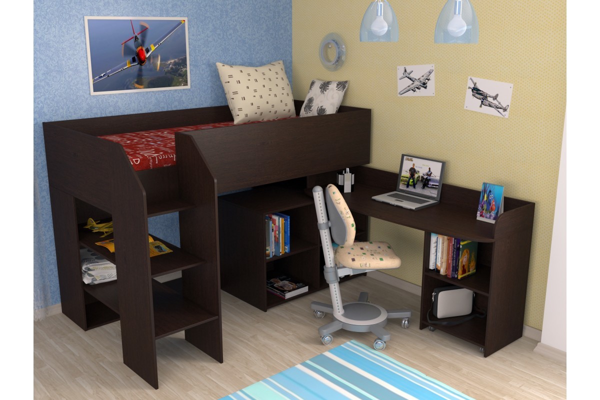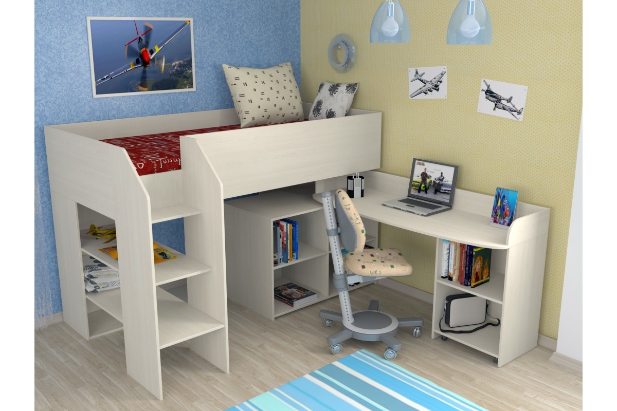 Представляет собой самодостаточный комплекс включающий в себя зону для сна, стеллаж и полноценный рабочий стол. Прочная конструкция рассчитана на детей от 3 до 18 лет. Такая детская обеспечит разумную экономию пространства в вашем доме и полностью обеспечит выполнение всех многообразных функций детской и подростковой комнаты.