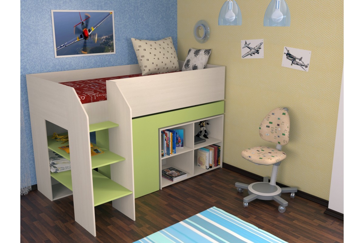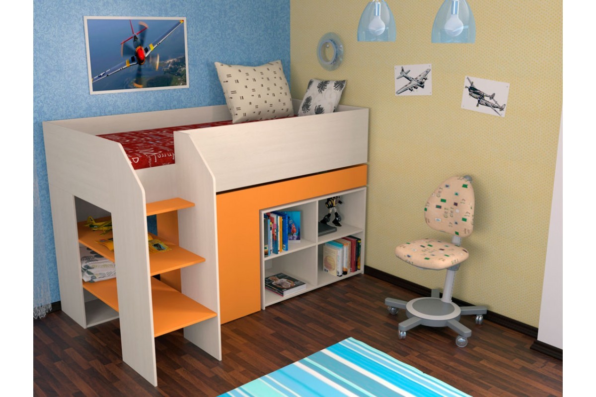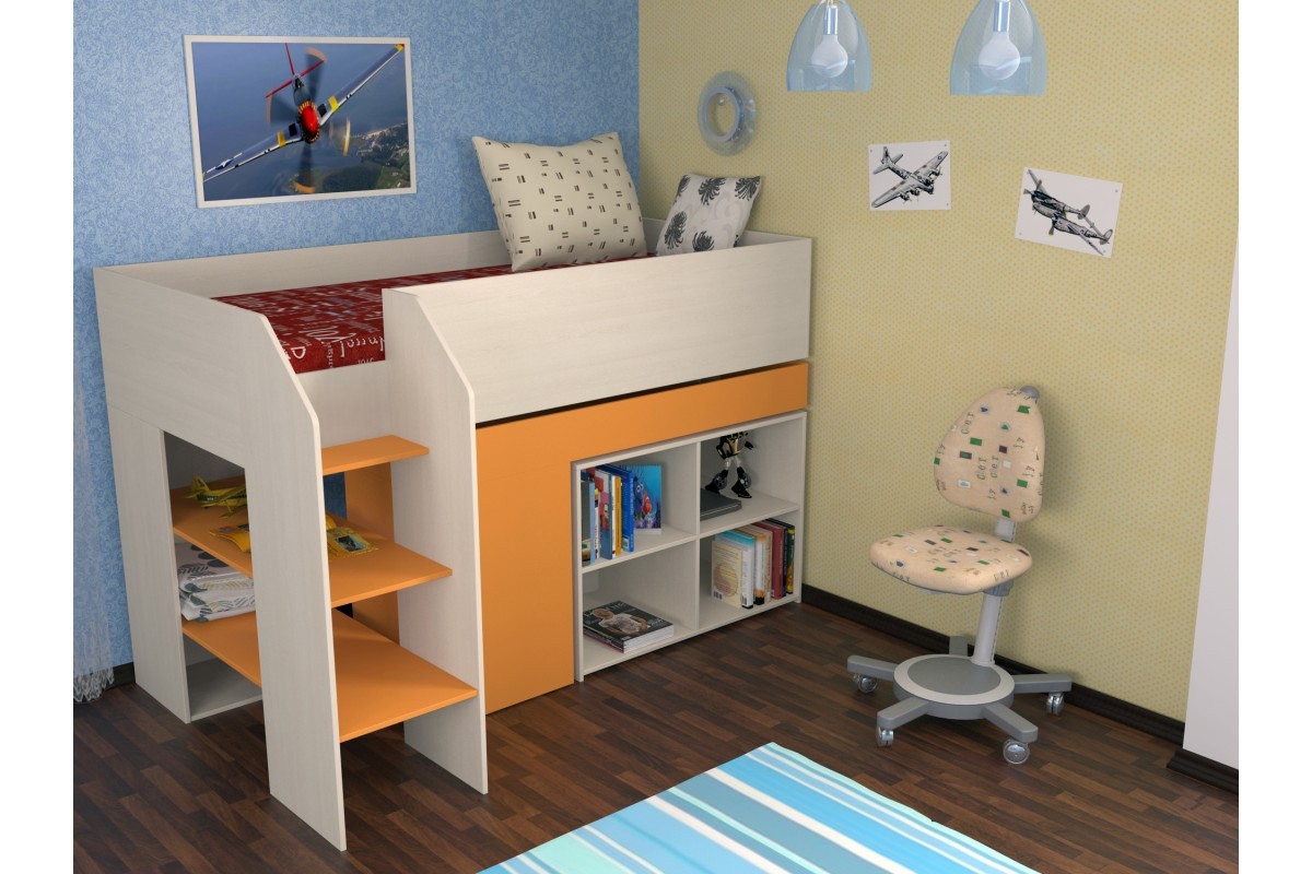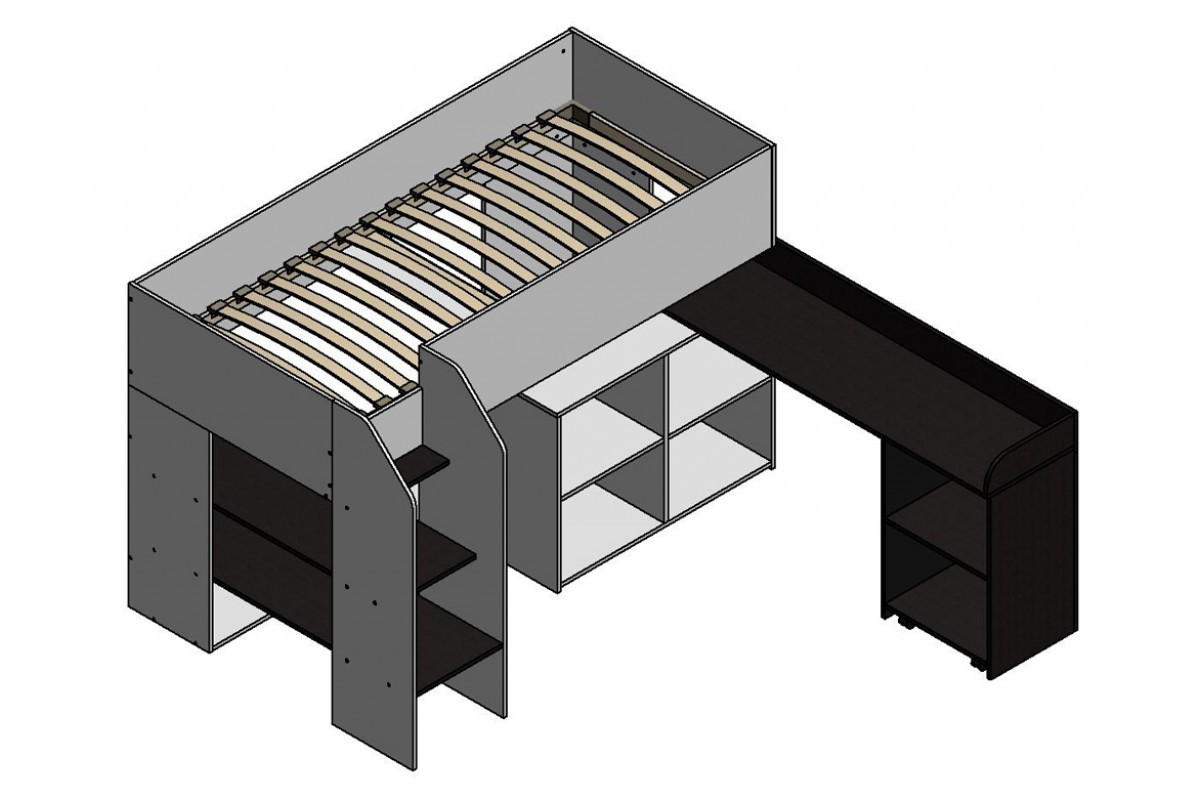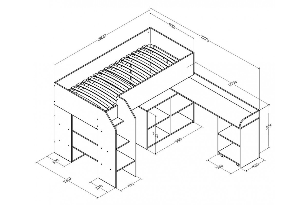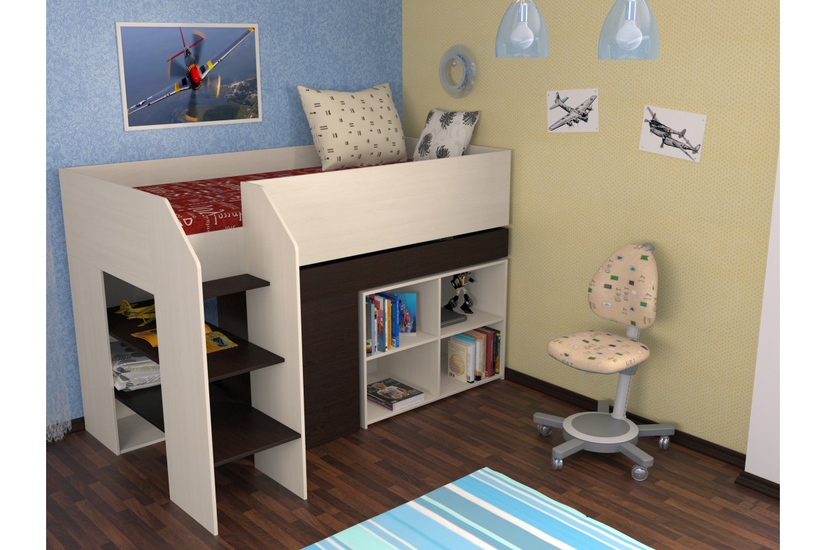 Представляет собой самодостаточный комплекс включающий в себя зону для сна, стеллаж и полноценный рабочий стол. Прочная конструкция рассчитана на детей от 3 до 18 лет. Такая детская обеспечит разумную экономию пространства в вашем доме и полностью обеспечит выполнение всех многообразных функций детской и подростковой комнаты.