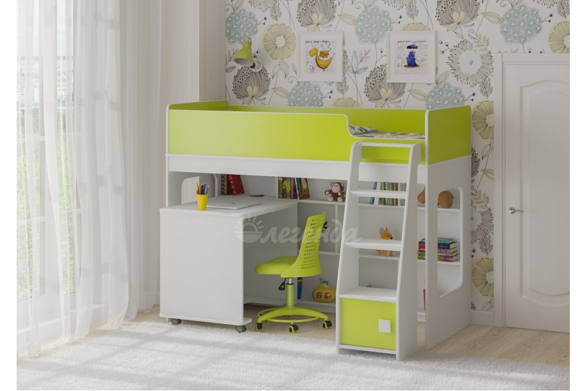 Кровать чердак Легенда 42.3.6 – великолепный комплект мебели с выдвижным столом.