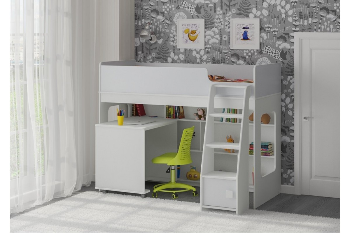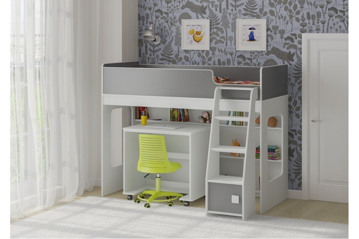 Внизу располагается игровая зона с полками – свой уголок для ребенка.