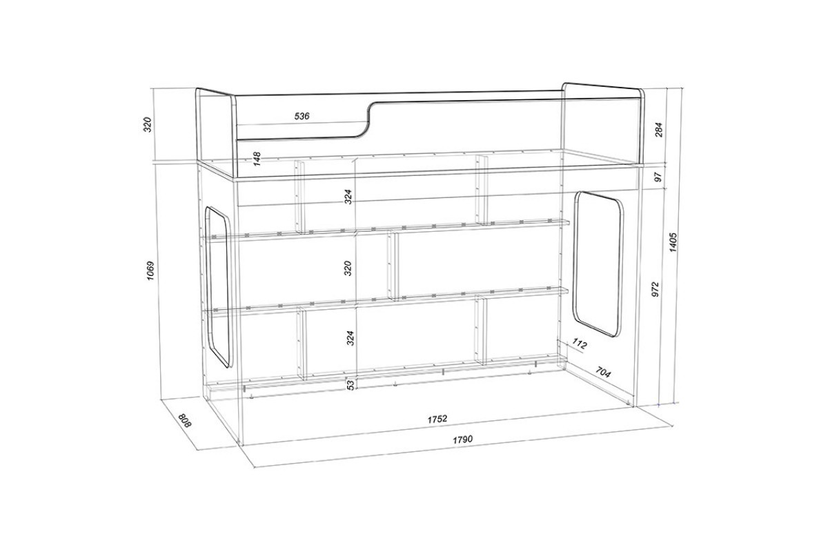 Высота кровати чердака всего 1405 мм, что легко позволит взрослым наблюдать за ребенком на кровати или достать что-то с верхнего яруса.