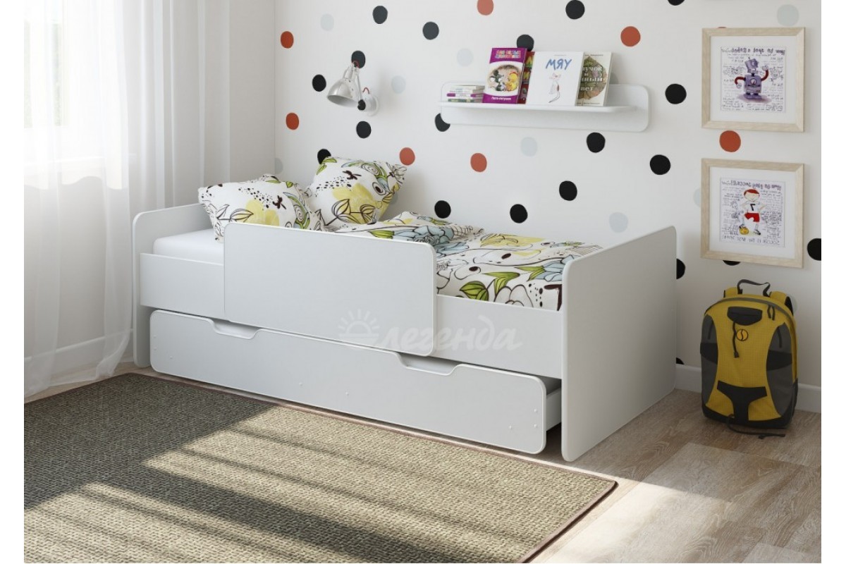Борт по центру кровати не даёт спящему ребенку упасть и в то же время остаётся место по бокам, чтобы слезть и залезть на кроватку.