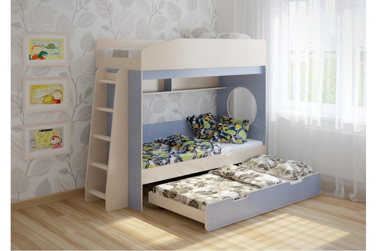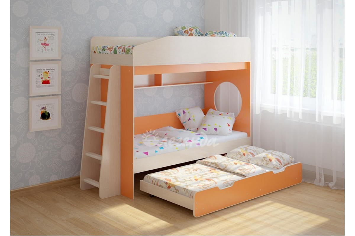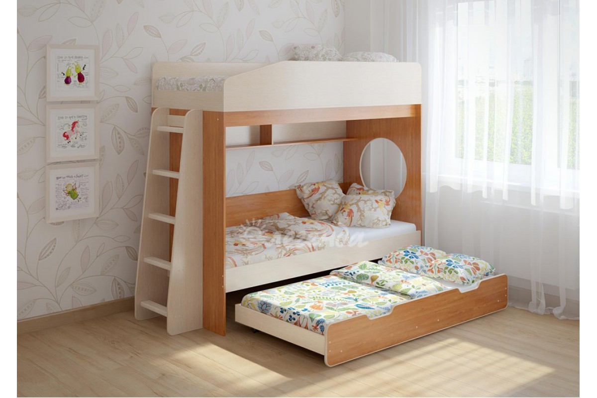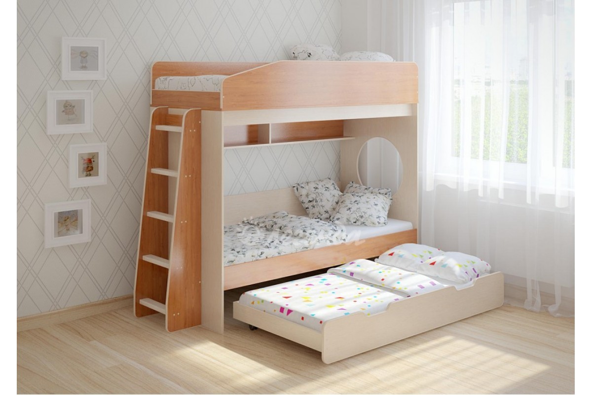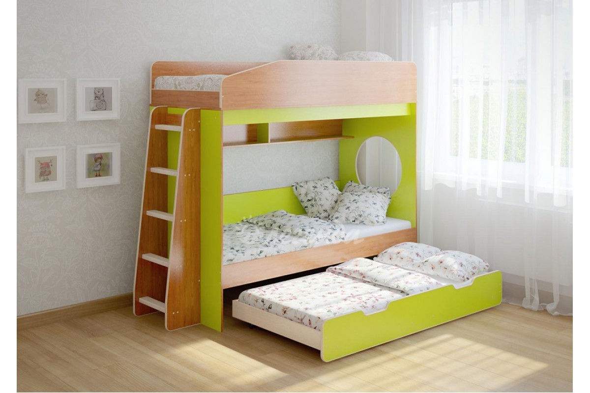 Детская выдвижная кровать Легенда 10.4 - уникальный комплект для троих детей!