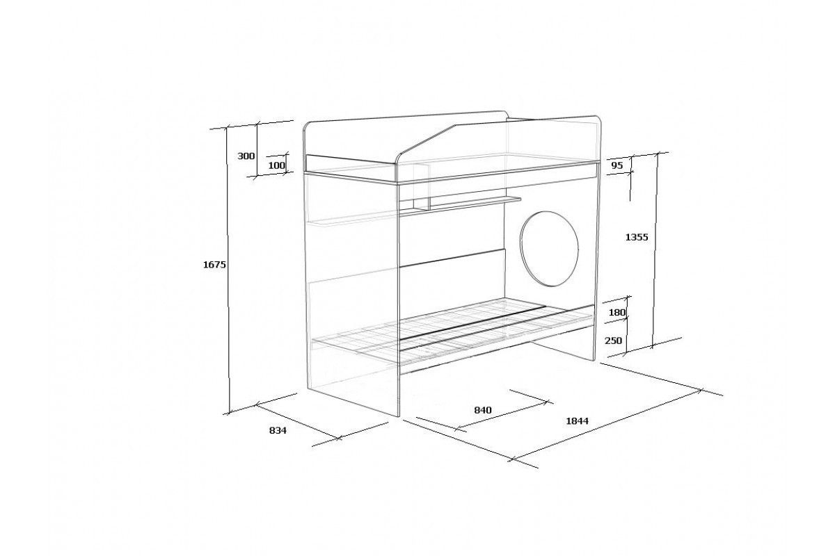 Под верхним спальным местом располагается встроенная двухсекционная полка, в которой удобно хранить книги, учебники, тетради,канцелярию и другие нужные вещи.