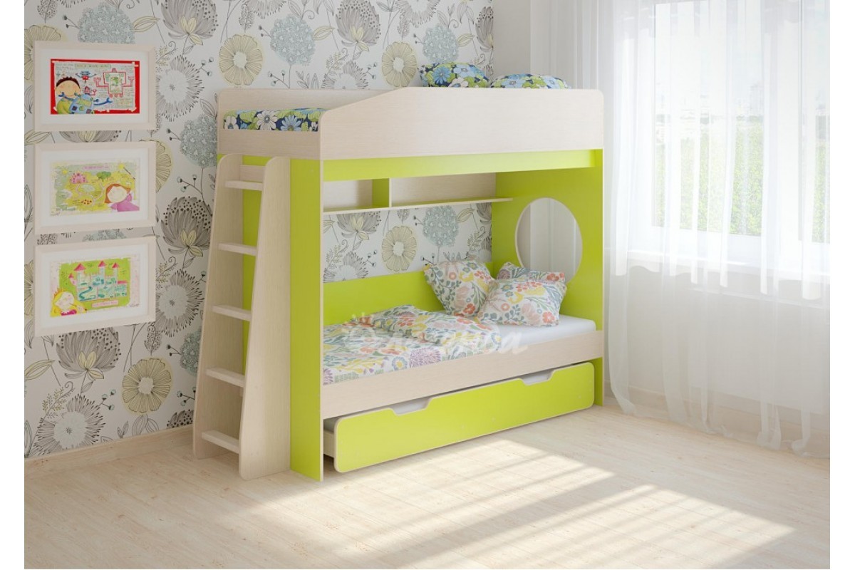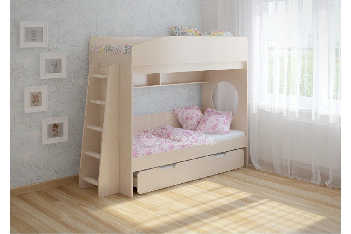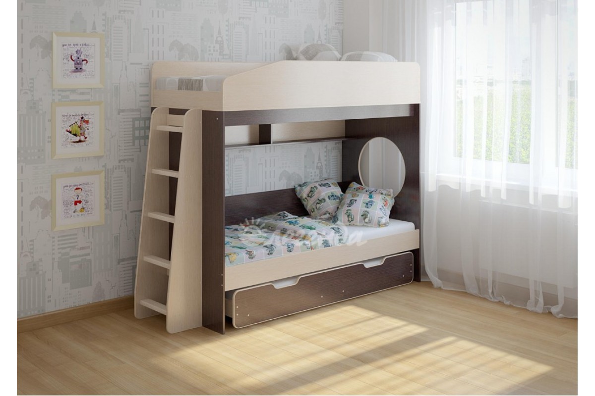 Классическая детская двухъярусная кровать с двумя параллельными спальными местами размером 1800х800.