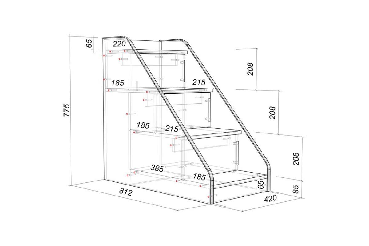 Угловая лестница-стеллаж из трех ступенек надёжна и безопасна.В комплект входят фасады,поэтому стеллаж состоит из трёх полноценных полок с дверками - удобное дополнительное место для хранения вещей.