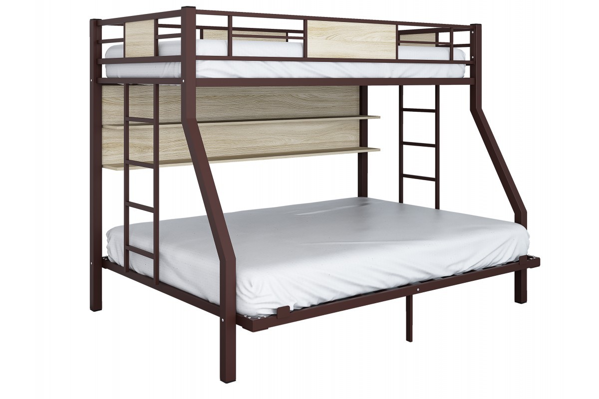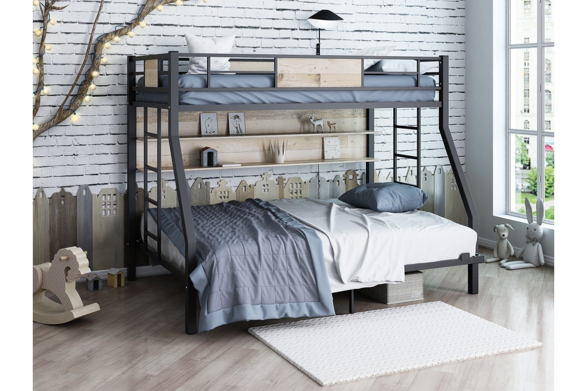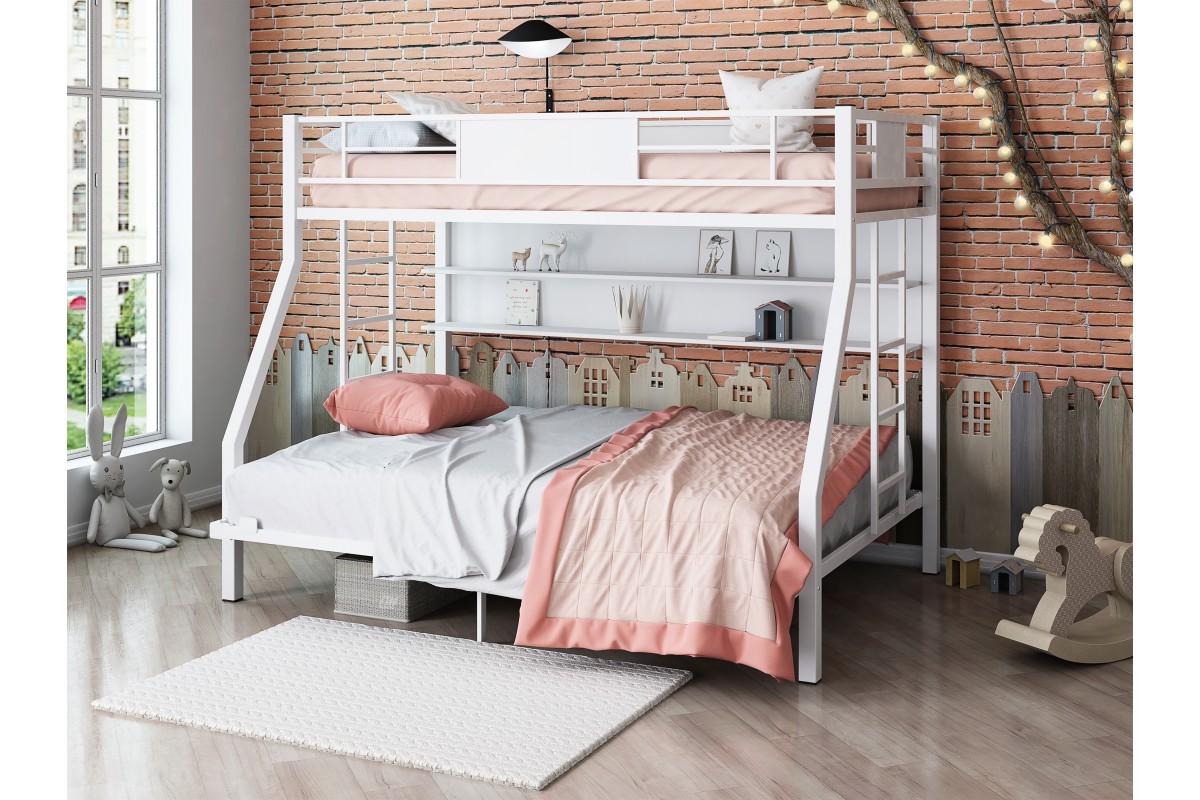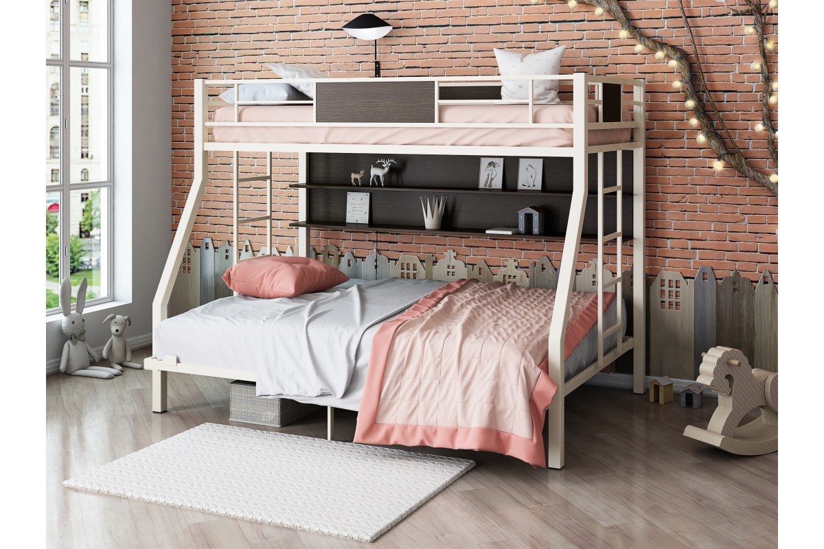 Металлическая двухъярусная кровать Гранада П 140 от производителя "Формула мебели" способна выдерживать нагрузку до 180 кг (на одно спальное место), что делает ее подходящей как для детей, так и для взрослых. Конструкция кровати предусматривает спальные места 90/190 см и 140/190см. В отличие от кроватей из ЛДСП выглядит менее громоздкой. В комплект входят две лестницы по бокам кровати.