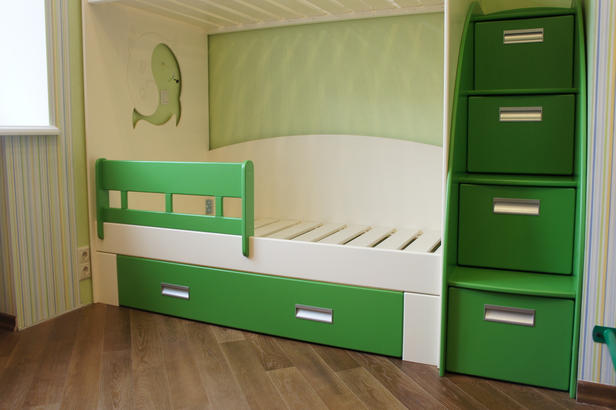 Приобретая двухъярусную кровать, родители решают сразу несколько задач: как экономично использовать пространство детской комнаты, а также подарить максимальный комфорт своим чадам. Специальные защитные бортики и прочная лестница комод с удобными ступенями обеспечат безопасность Вашего ребенка во время сна и игр.