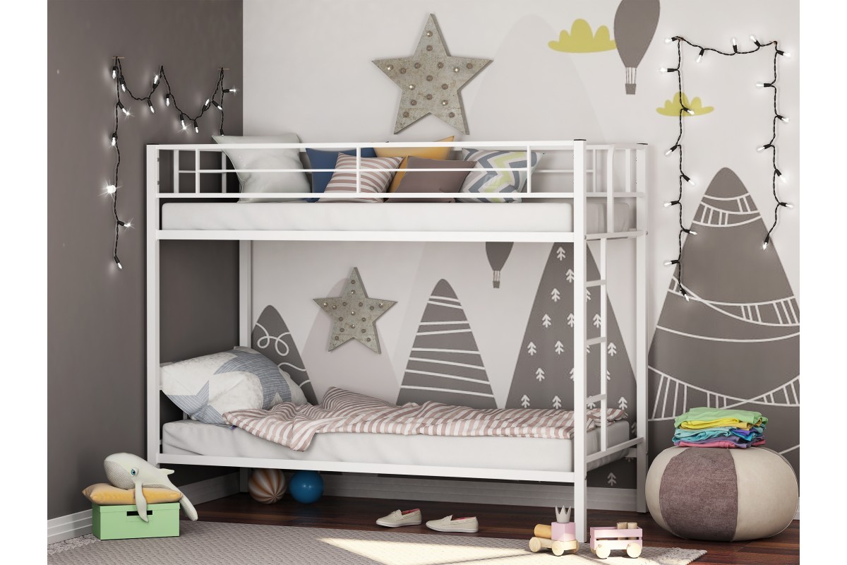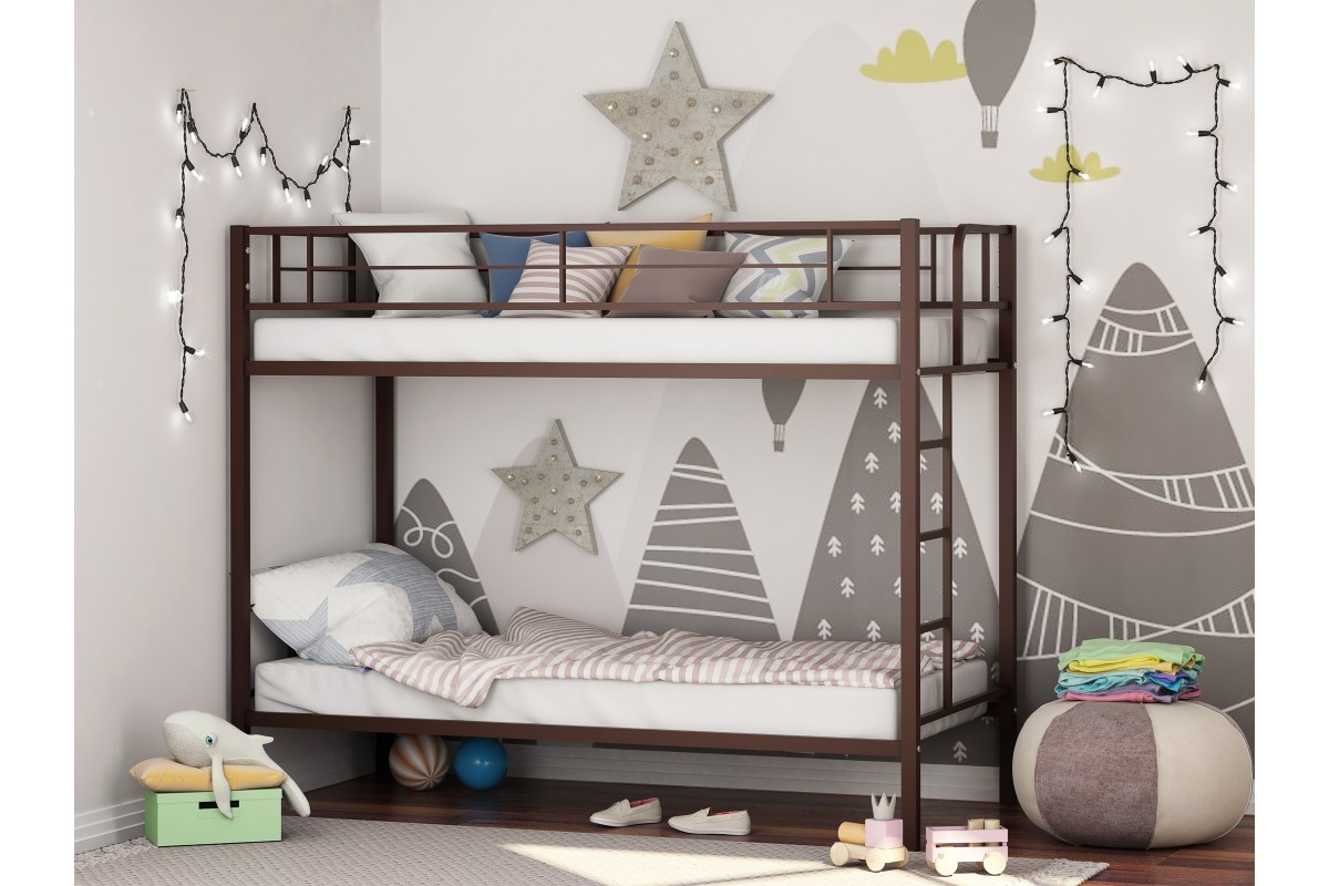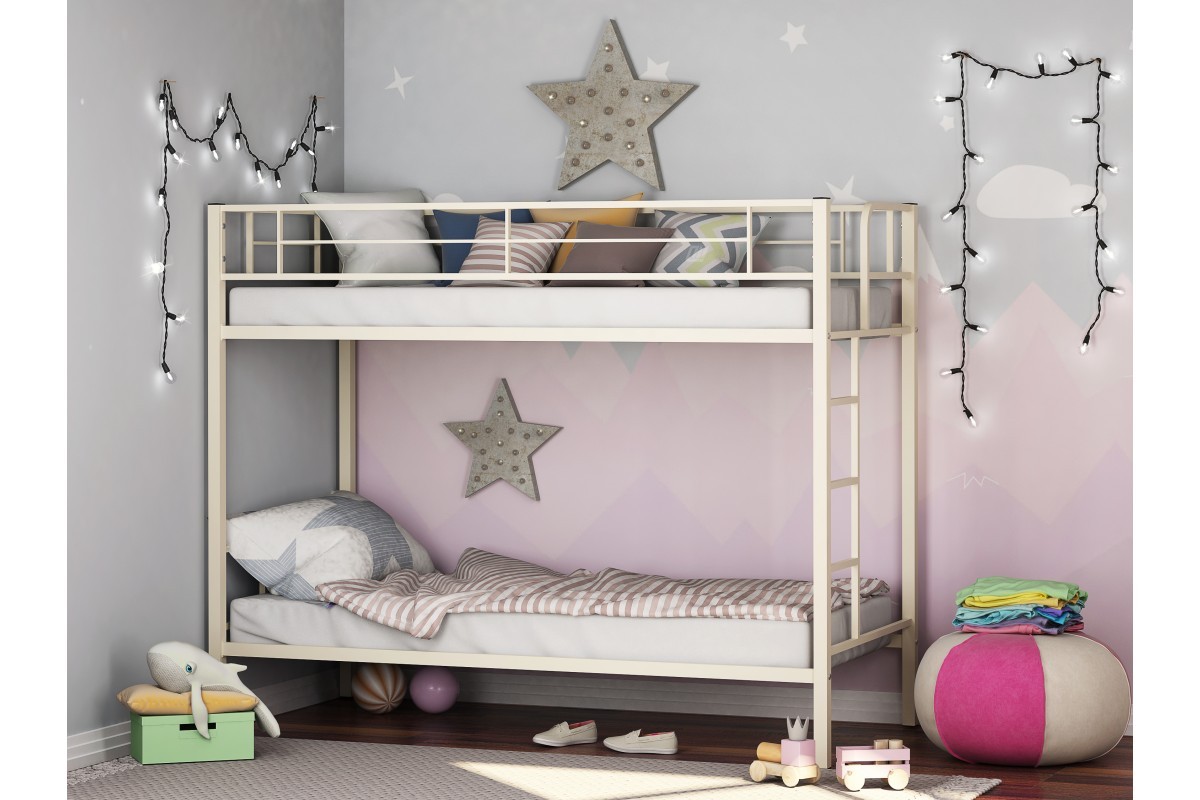 Все металлические элементы кровати покрыты износоустойчивой краской без запаха. Двухъярусную кровать можно собирать и разбирать неограниченное количество раз, и от этого она не потеряет в прочности и качестве.