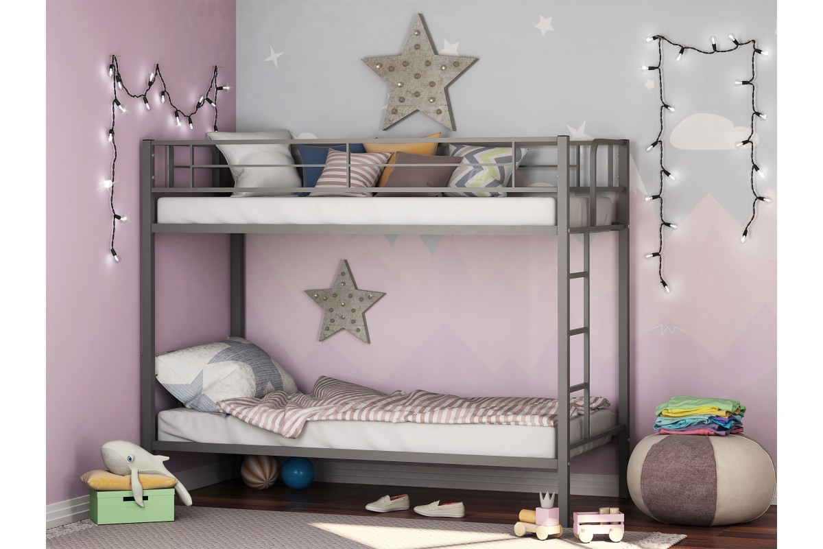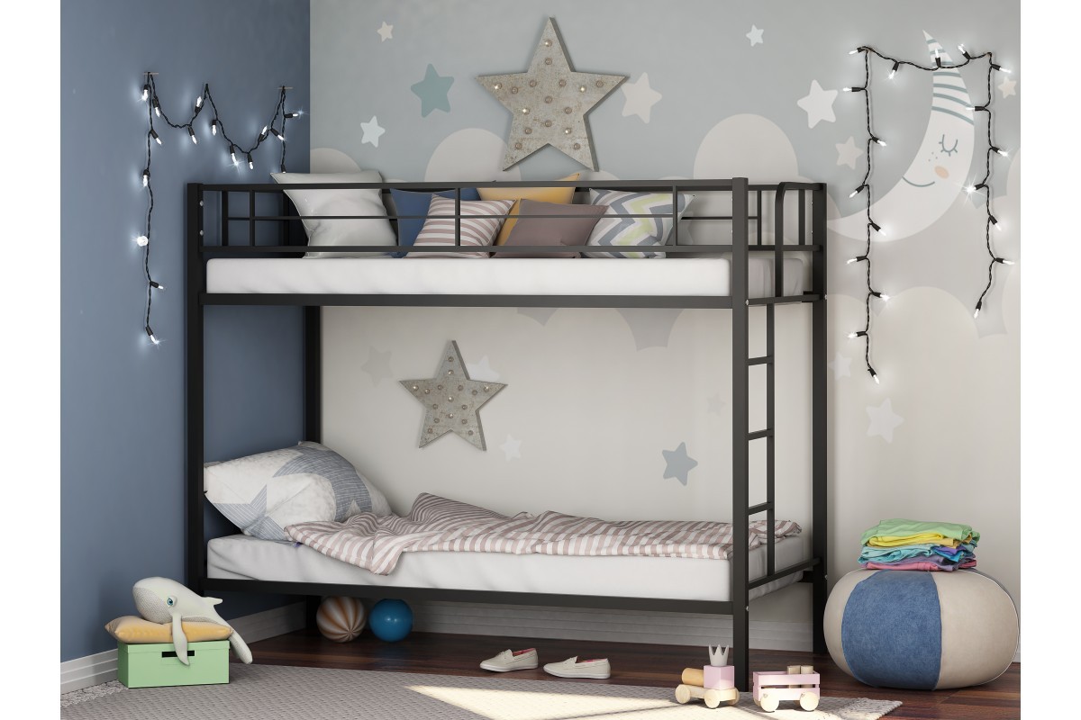 Металлическая двухъярусная кровать Севилья от производителя "Формула мебели" способна выдерживать нагрузку до 180 кг (на одно спальное место), что делает ее подходящей как для детей, так и для взрослых. В отличие от кроватей из ЛДСП выглядит менее громоздкой. В комплект входит прочная лестница, которую по Вашему желанию можно установить справа или слева.