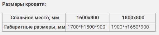 Спальное место двух вариантов размера: 160х80 см или 180х80 см.