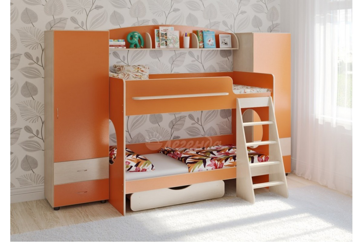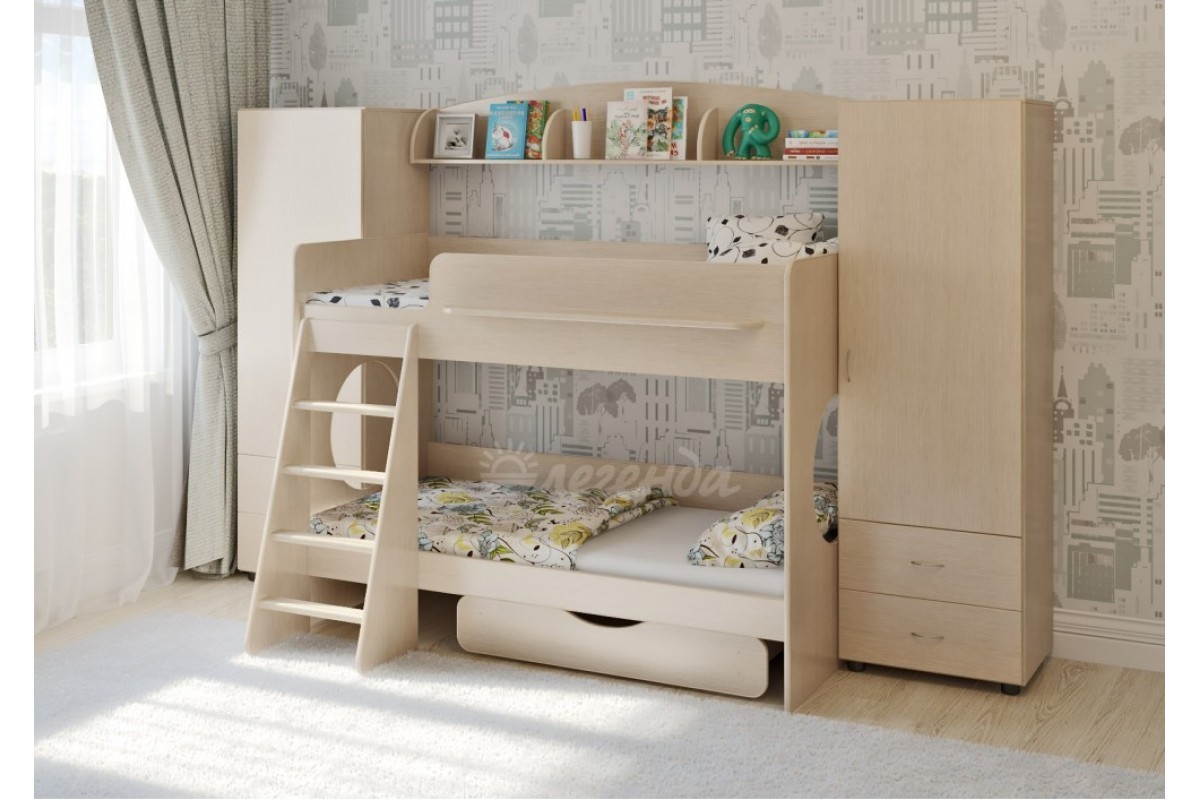 Двухъярусная кровать Легенда 25.6 - многофункциональный и вместительный комплект мебели для двоих детей.