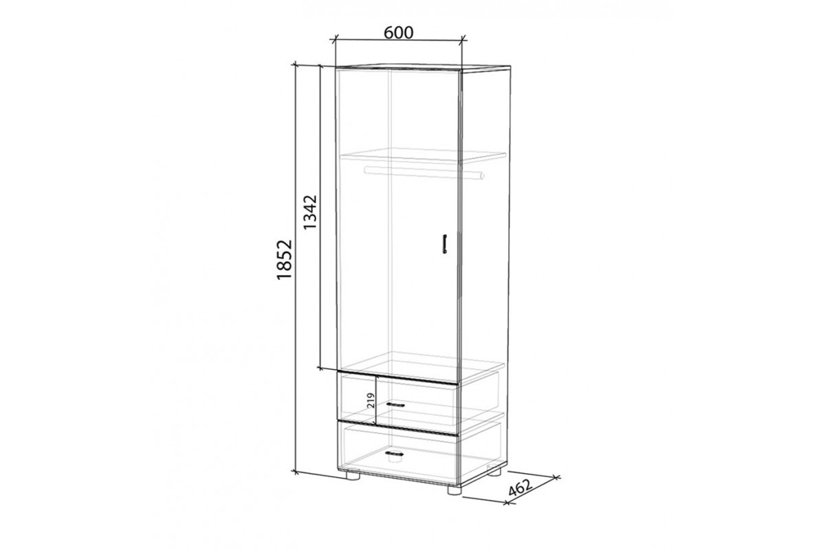 Два компактных одностворчатых пенала, внутри которых расположена штанга для «плечиков» и полка для головных уборов. Внизу пенал оборудован двумя выкатными ящиками. В качестве опоры служат четыре ножки, снижающие вред для полового покрытия при перестановке.