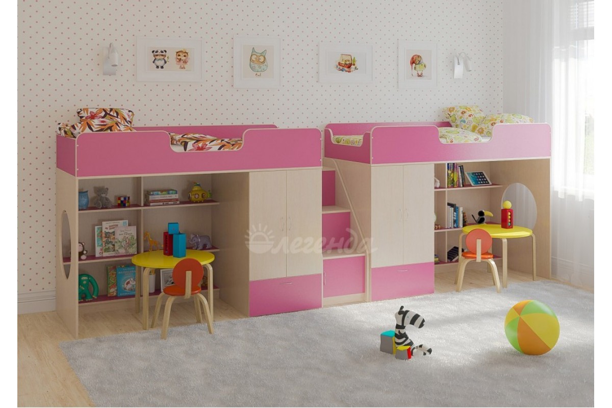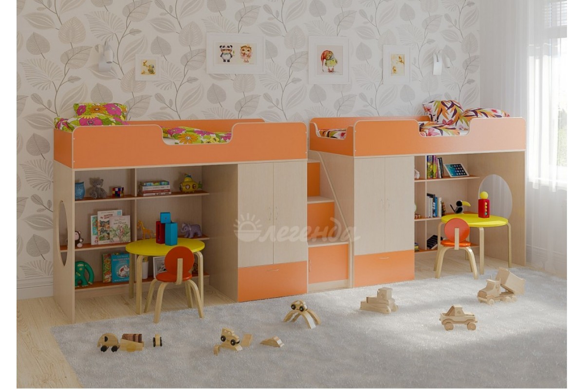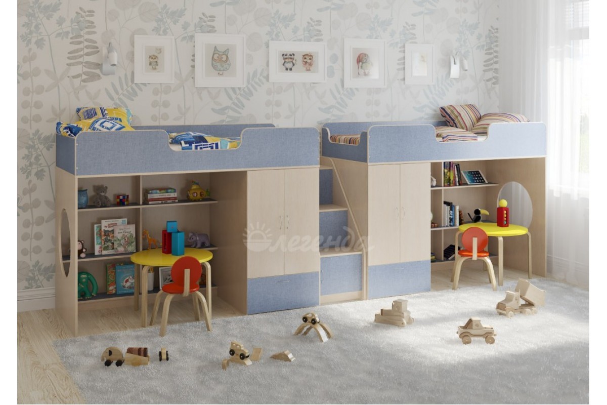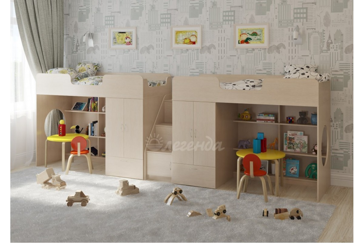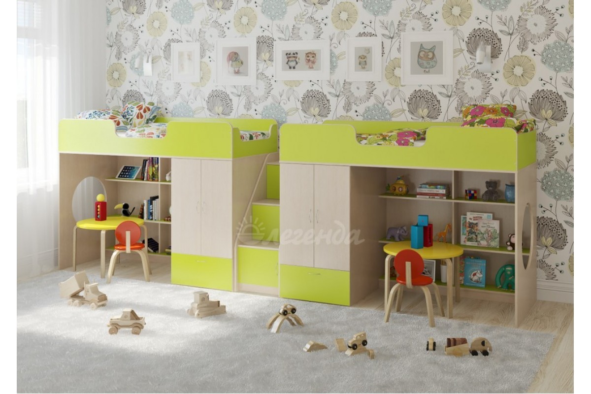 Две кровати, два шкафа, две игровых зоны – одна лестница. Идеальный вариант для сиблингов!