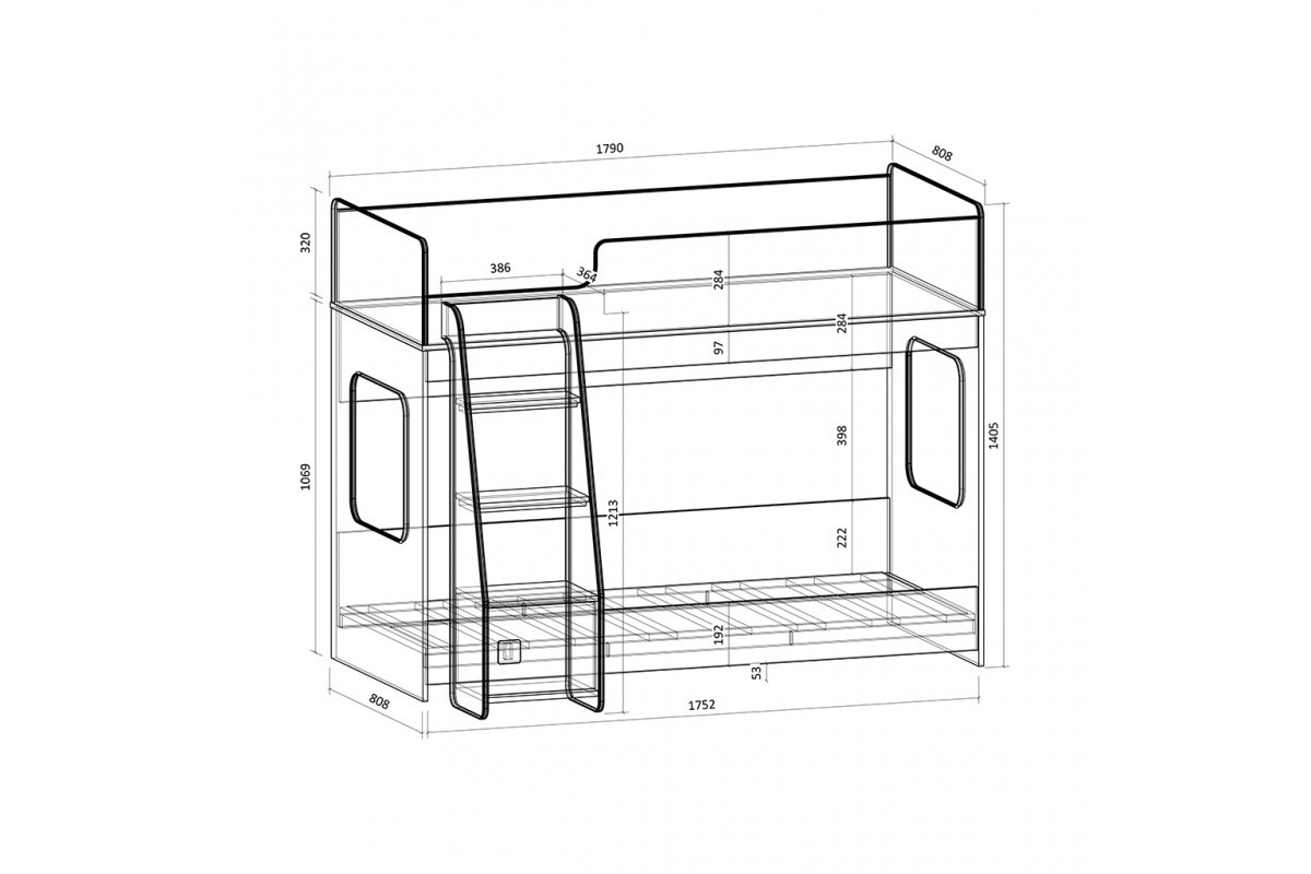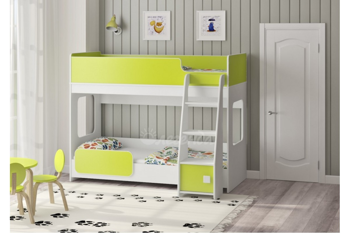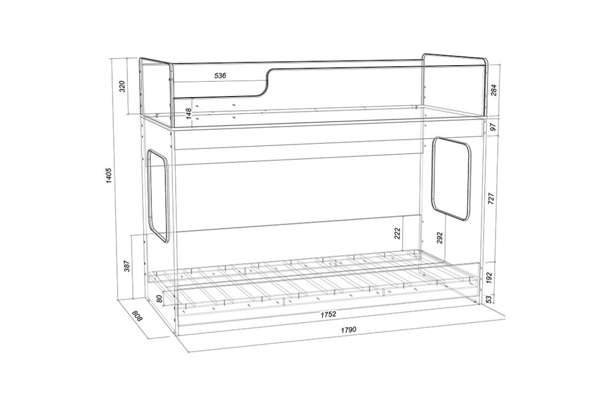 Высота кровати – всего 1405 мм.Удобно - взрослый может заправить кровать,не забираясь на второй ярус.