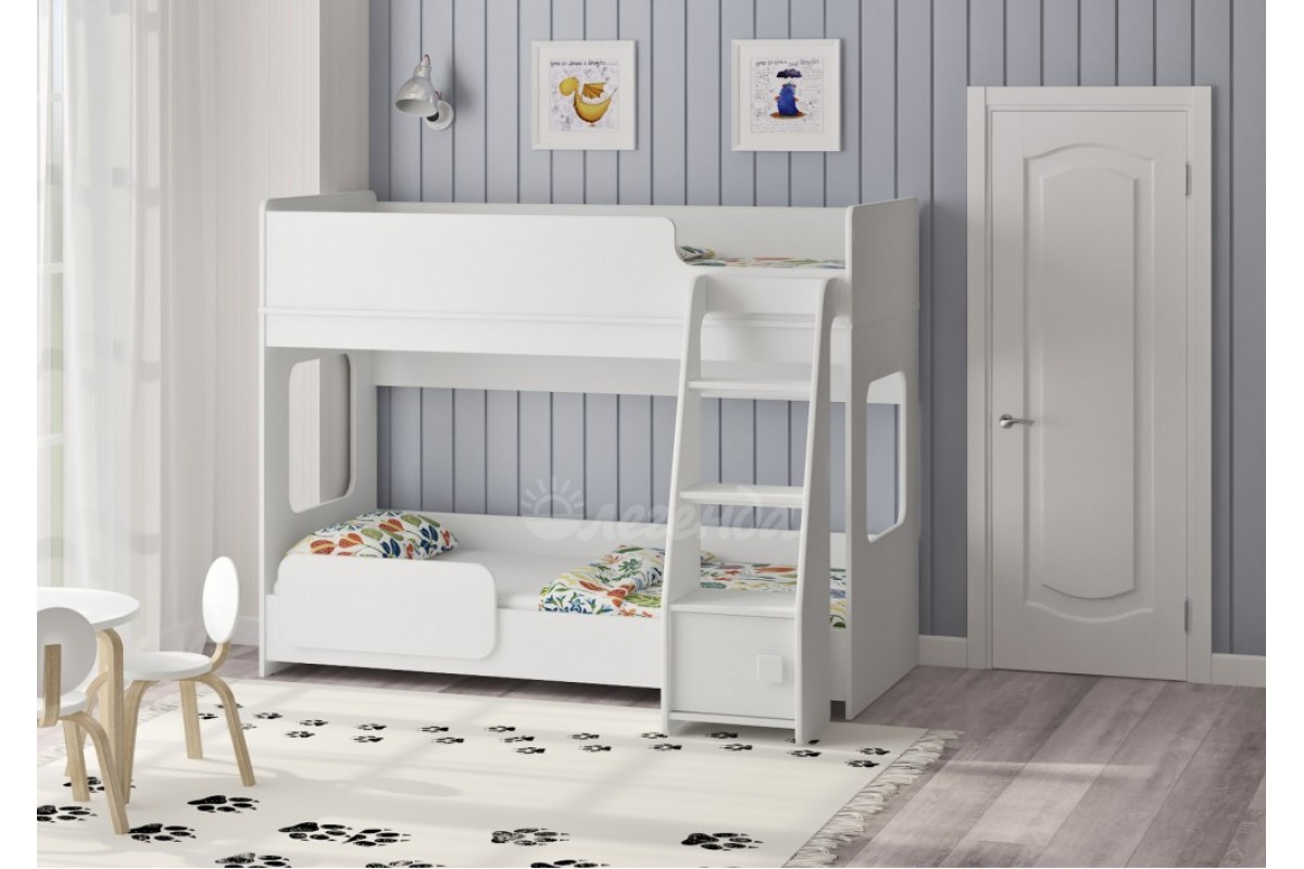 Нижний ярус имеет реечное дно.По вашему желанию нижний ярус кровати можно оснастить бортиком безопасности.