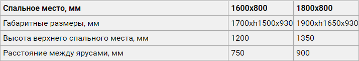 Спальное место возможно двух вариантов размера: 160х80 см или 180х80 см.