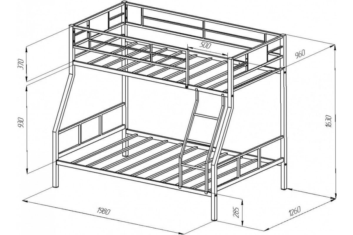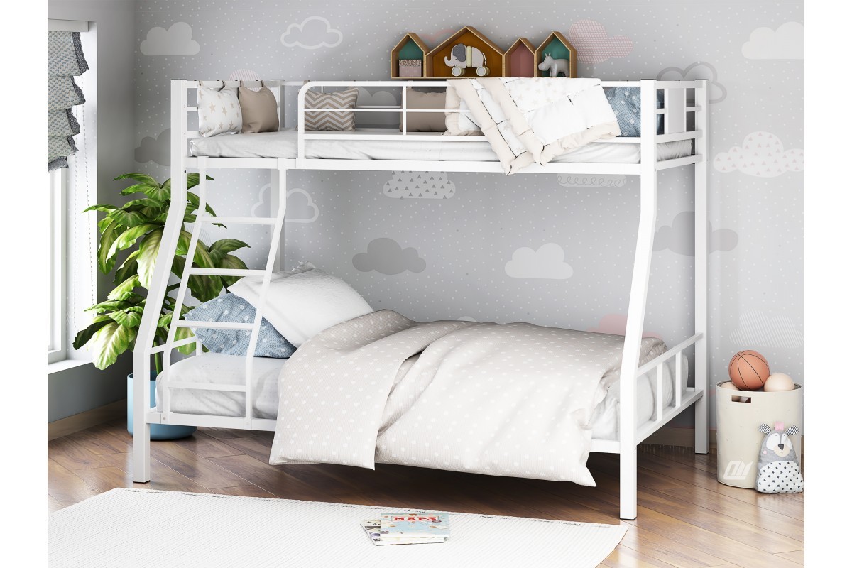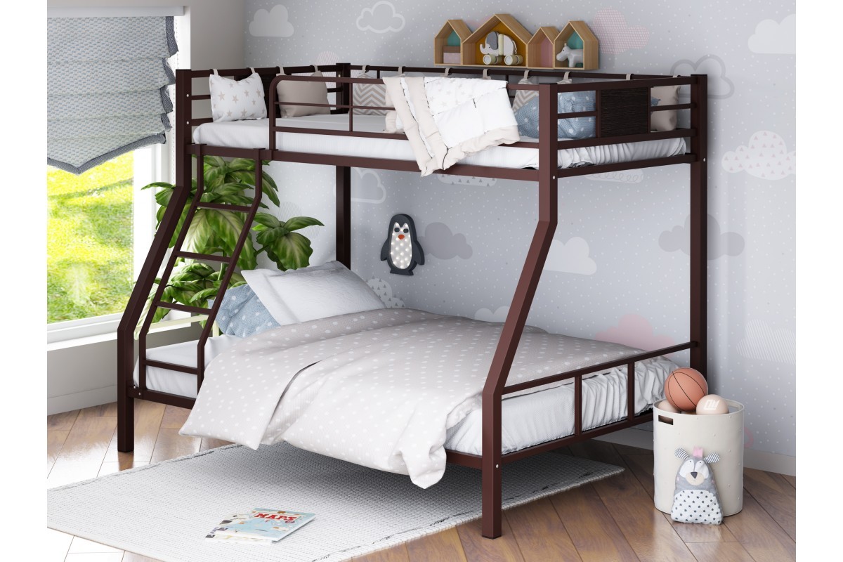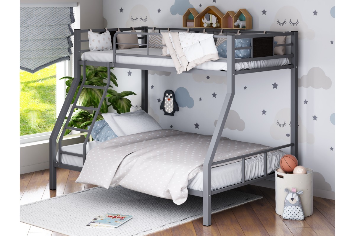Металлическая двухъярусная кровать Гранада-1 от производителя "Формула мебели" способна выдерживать нагрузку до 180 кг (на одно спальное место), что делает ее подходящей как для детей, так и для взрослых. Конструкция кровати предусматривает спальные места разных размеров. В отличие от кроватей из ЛДСП выглядит менее громоздкой. В комплект входит прочная лестница, которую по Вашему желанию можно установить справа или слева.
