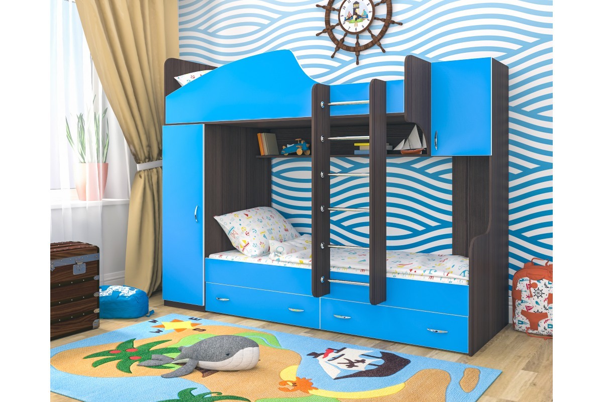Двухъярусная кровать «Юниор 2», конечно, нравится взрослым: она удобна, практична и хорошо экономит пространство комнаты, оставляя место для другой необходимой мебели.