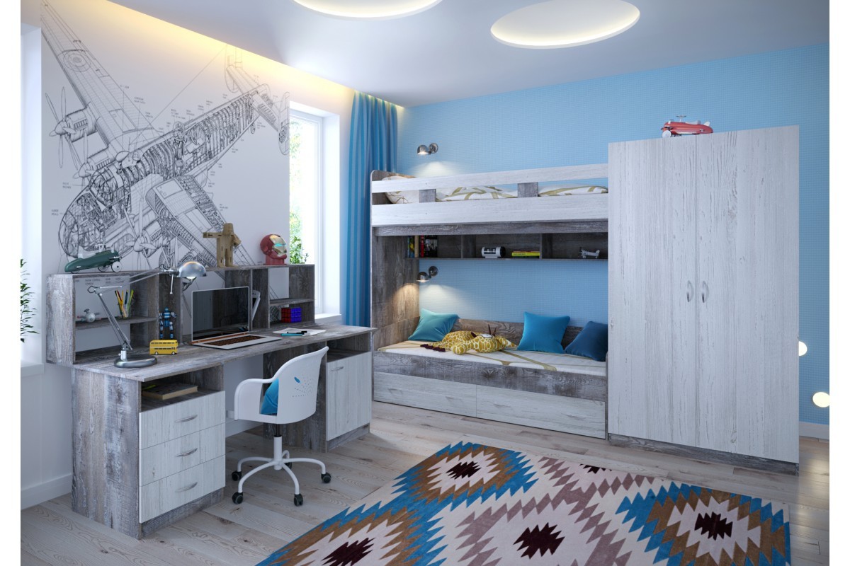 Кровать Юта-2 от ЯРОФФ в Москве – модель в классическом, но при этом современном дизайне актуальной цветовой палитры, которая подчеркнет или создаст стильный интерьер в детской комнате. Она выполнена в лаконичном дизайне, оснащена двумя удобными спальными местами, вместительным шкафом для хранения одежды и постельного белья.