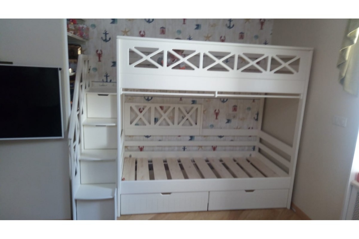 Приобретая двухъярусную кровать, родители решают сразу несколько задач: как экономично использовать пространство детской комнаты, а также подарить максимальный комфорт своим чадам. Специальные защитные бортики и прочная лестница комод с удобными ступенями обеспечат безопасность Вашего ребенка во время сна и игр.