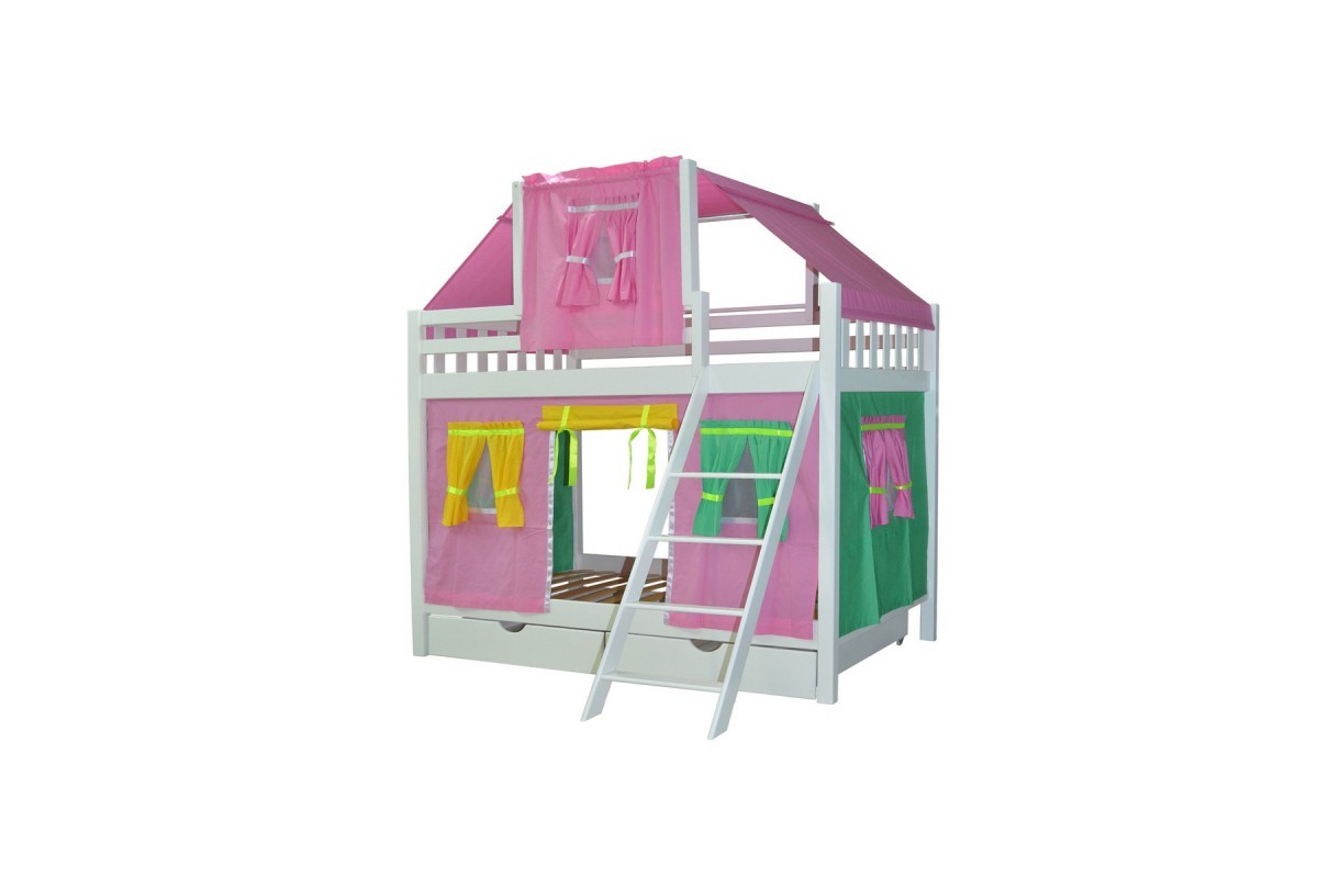 Мебель непременно понравится вашим деткам, ведь теперь у них появится замечательная возможность обустроить свои собственные уютные уголки и воплощать фантазии в реальность. Текстильный декор превращает обычную двухъярусную конструкцию в настоящий игровой домик из сказки.