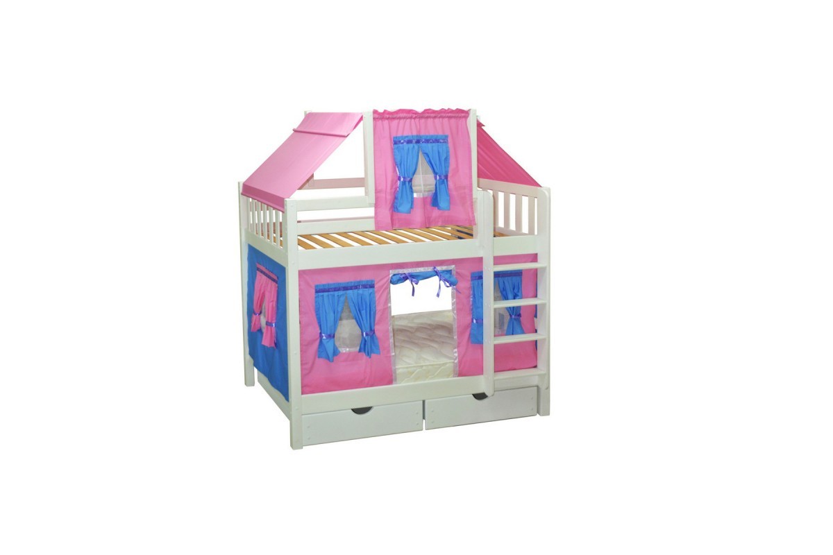 Игровая двухъярусная кровать Скворушка позволит вашим девочкам создать собственный мир, в котором им комфортно играть, заниматься творчеством и фантазировать. Эта мебель идеально подойдет для маленьких сестричек, которые делят одну комнату на двоих. У каждой появится свой укромный уголок, который можно обустроить по своему вкусу и желанию. Верхний ярус совершенно безопасен, благодаря надежной защите. На нижнем могут спать даже малыши от полутора лет, так как есть возможность дополнительно заказать защитный борт на нижний ярус.