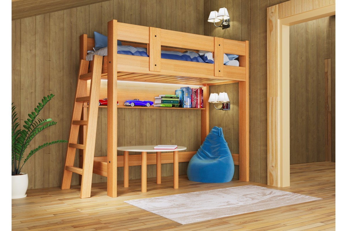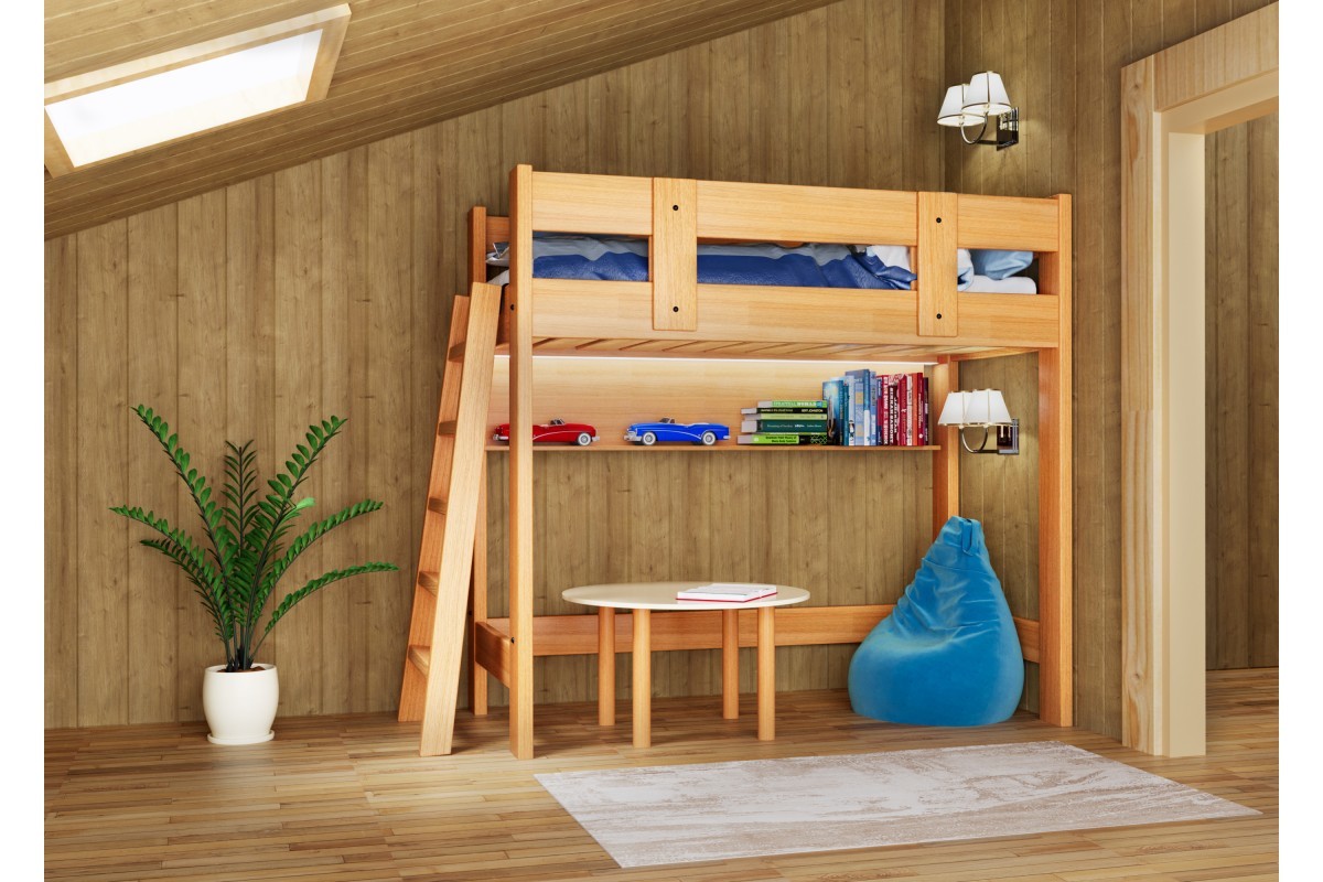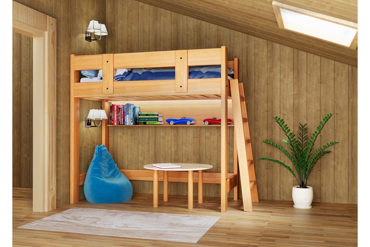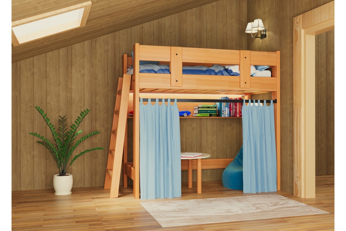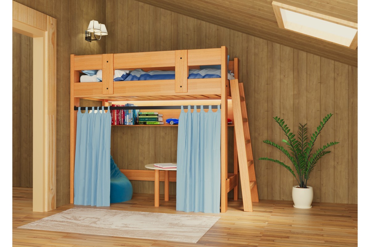 Кровать оснащена базовой лестницей, которая входит в стоимость. Изголовье и лестница могут быть изготовлены справа или слева, на Ваш выбор. Возможно изготовление с цельным передним бортом, лестницей у изножья справа или слева. Дополнительно к кровати Вы можете заказать шторки, которые помогут создать мини гардеробную или зону для игр.