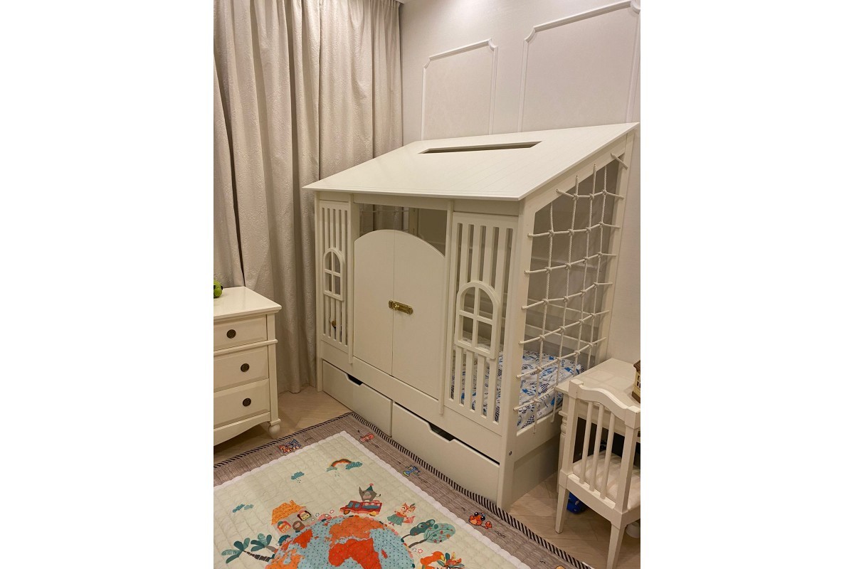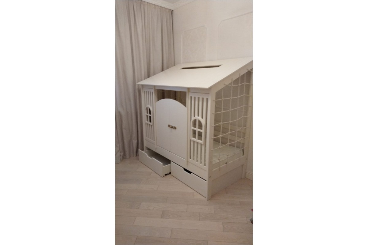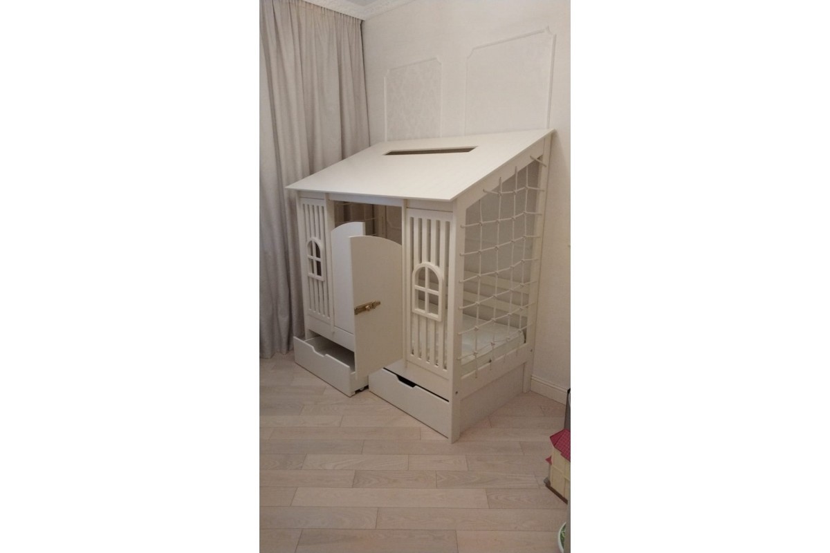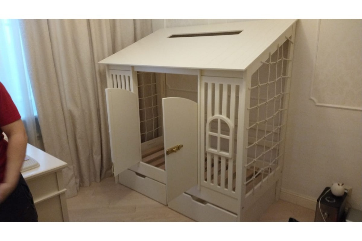 Кровать домик - осуществимая мечта каждого ребенка, который так же, как и взрослый нуждается в уединенном местечке, где можно спокойно отдохнуть или поиграть, спрятать свои личные несметные сокровища. Кроватка в виде домика подарит малышу своё личное пространство для спокойного сна и весёлых игр. Необычная детская кровать с нестандартным дизайнерским решением в виде натянутой спортивной сетки по бокам непременно заинтересует малыша, на такой кровати ребенок будет не только спать, но и проводить все свободное время – устраивать игры, общаться с друзьями. Закрывающиеся створки с внешней стороны помогут контролировать действия малыша, когда он остается без присмотра взрослых, обеспечат безопасность Вашего ребенка во время сна и игр.