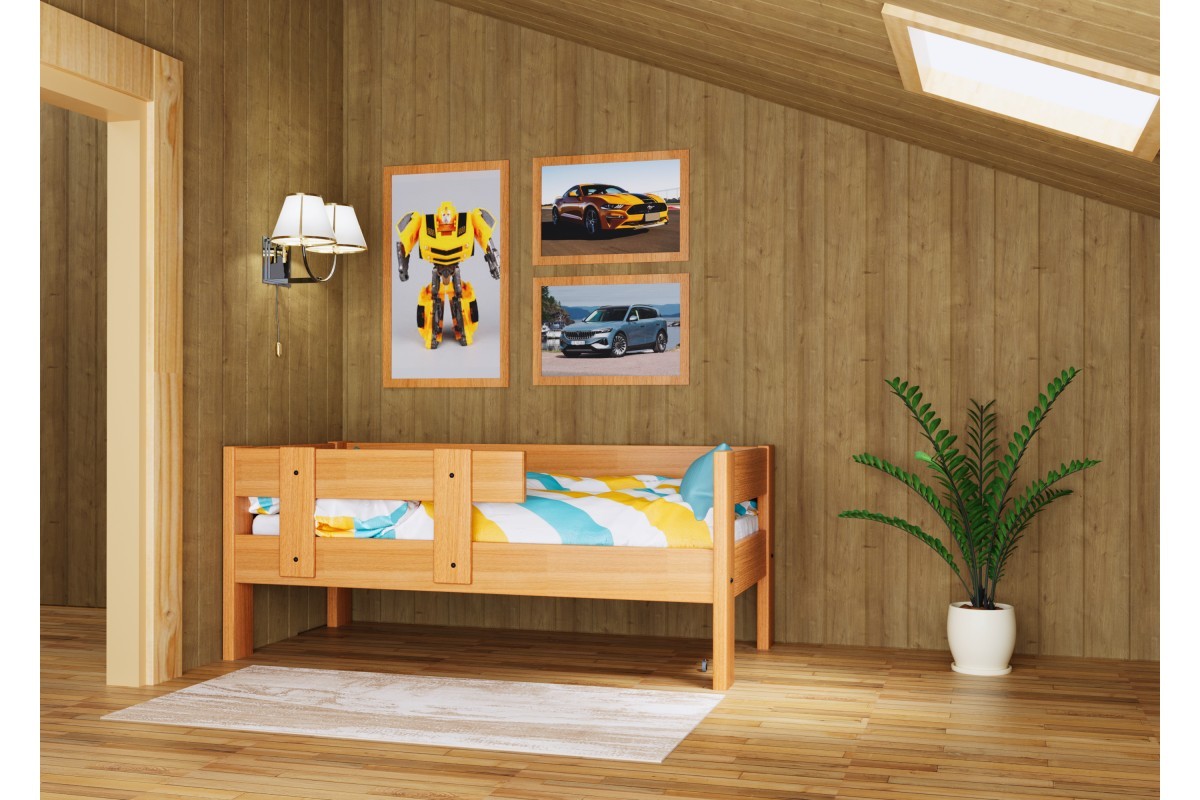 Детская классическая односпальная кровать - беспроигрышный вариант. Удобная, универсальная, прочная. Такой вариант прекрасно подойдет для дачи, детской у бабушки или для обустройства временной детской комнаты. А если у Вас интерьер в стиле кантри, то односпальная кровать Ранчо просто находка для Вас.