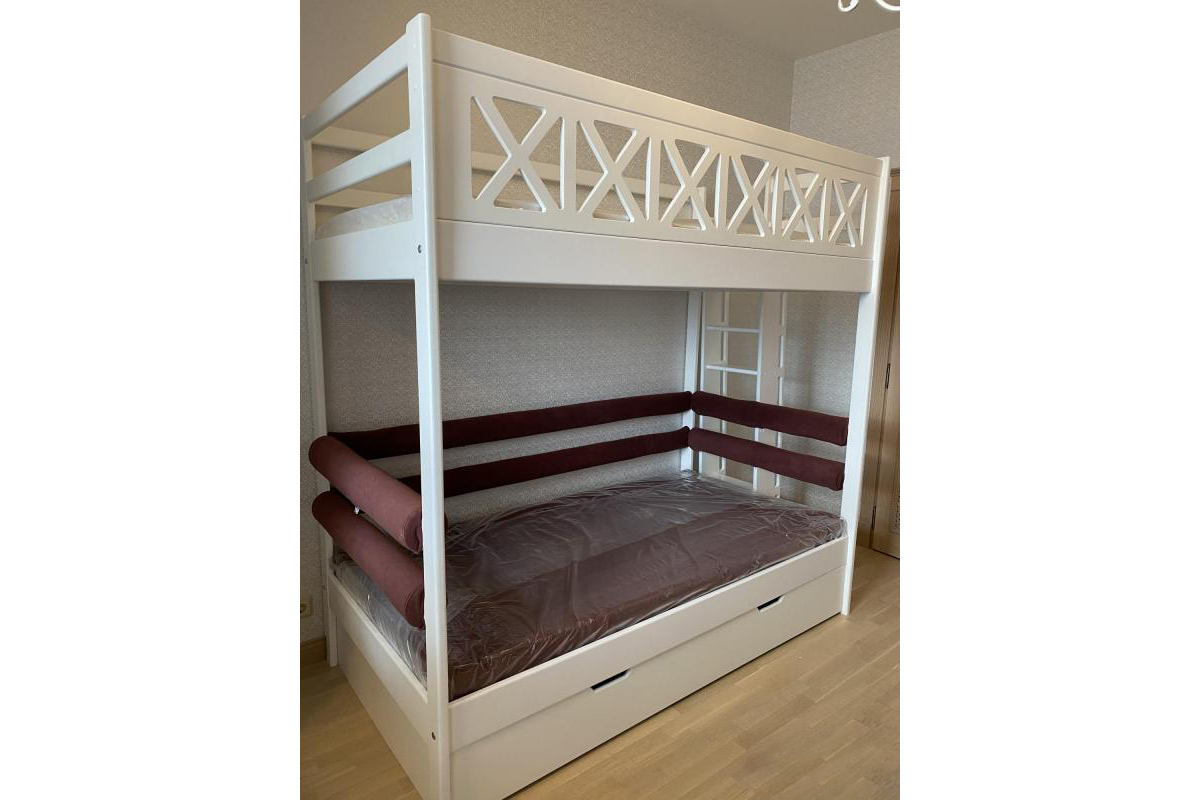Специальные защитные бортики и прочная лестница с удобными ступенями обеспечат безопасность Вашего ребенка во время сна и игр.