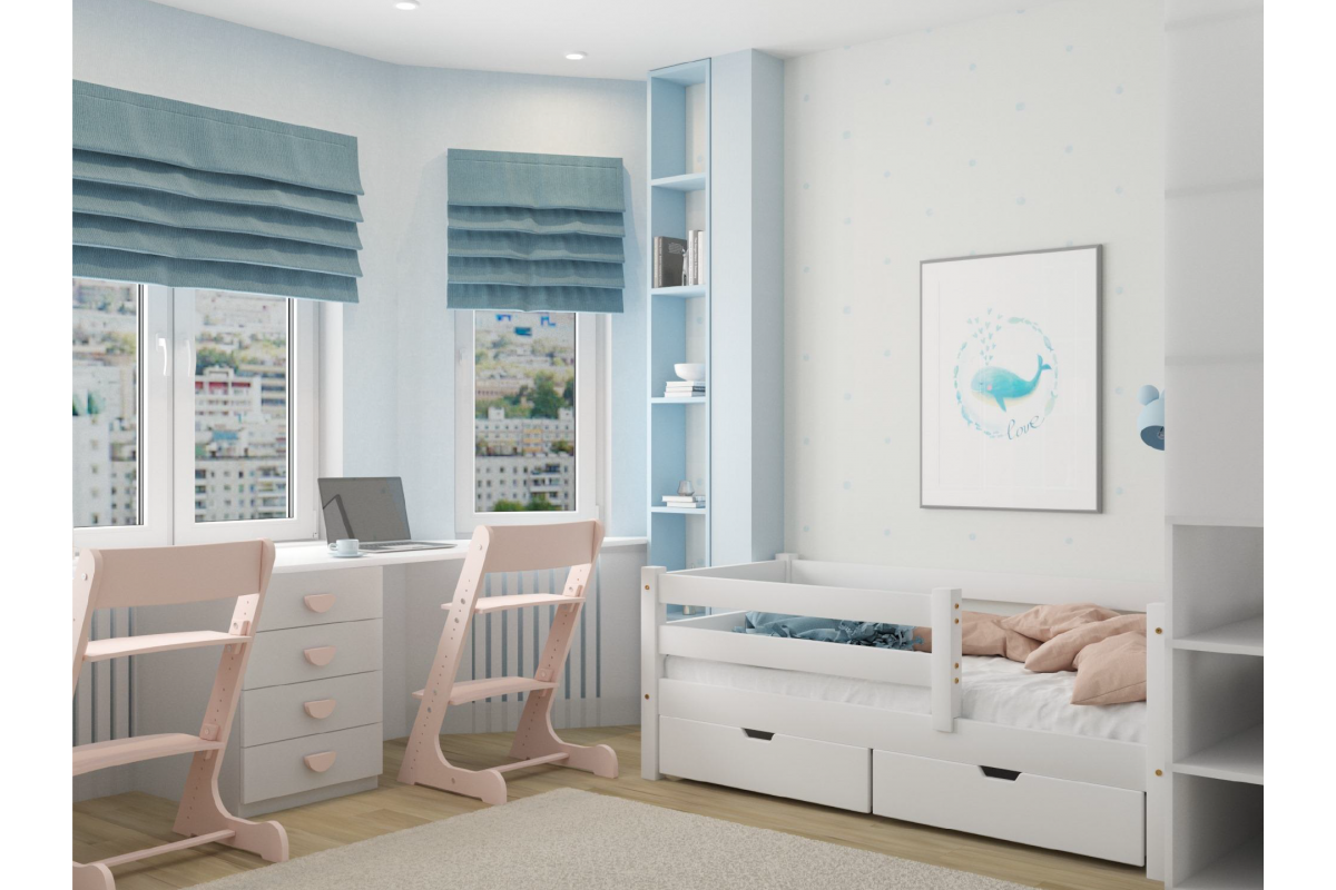 Такая кровать идеально впишется в любой интерьер детской комнаты. По желанию Вы можете дополнить детскую кровать одним или двумя выкатными ящиками, которые пригодятся для хранения сезонных вещей или игрушек.