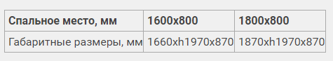 Спальное место двух размеров на выбор: 160х80 см или 180х80 см. Основание спального места - ортопедическое. Матрас не входит в начальную стоимость кровати.