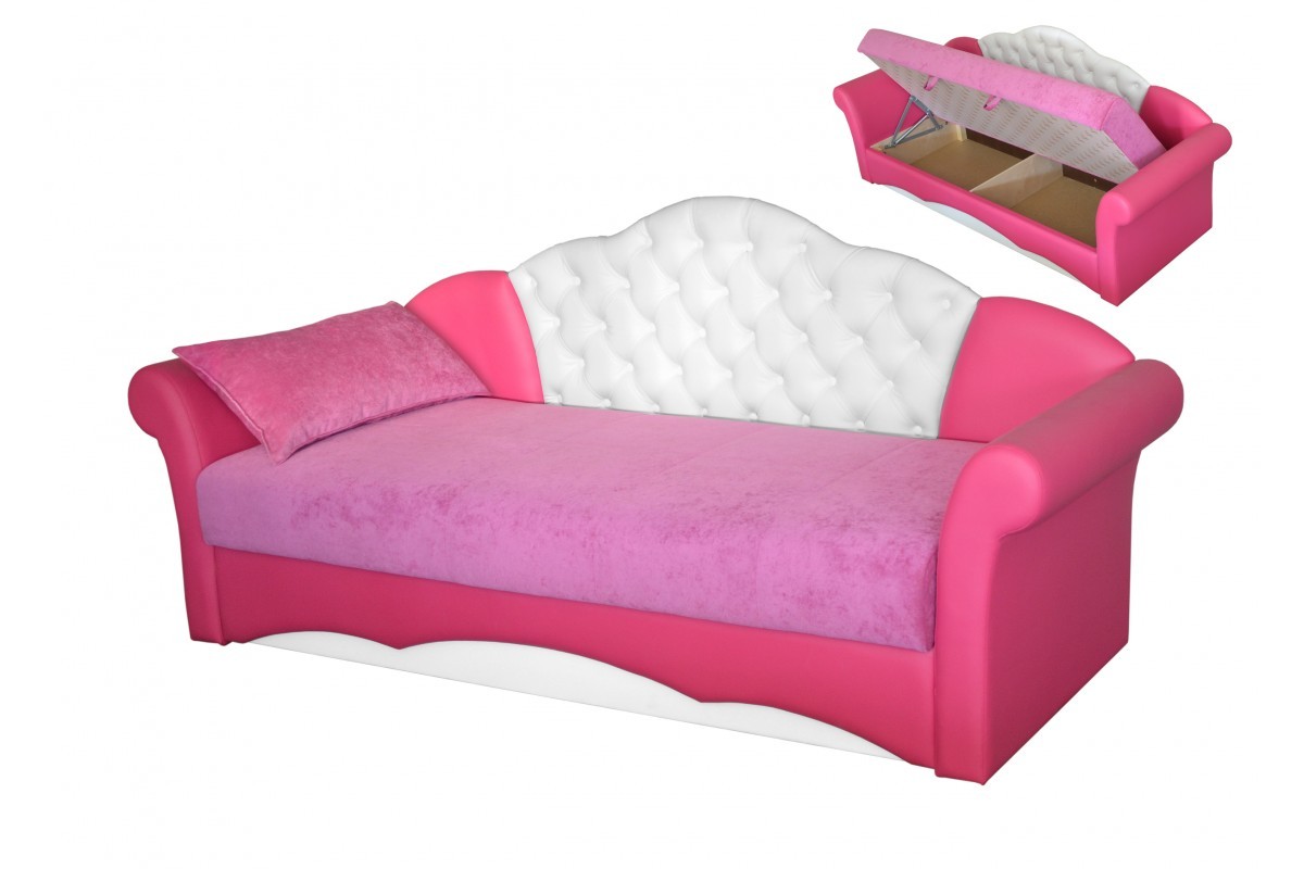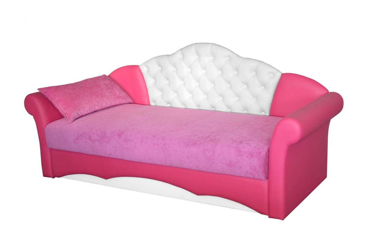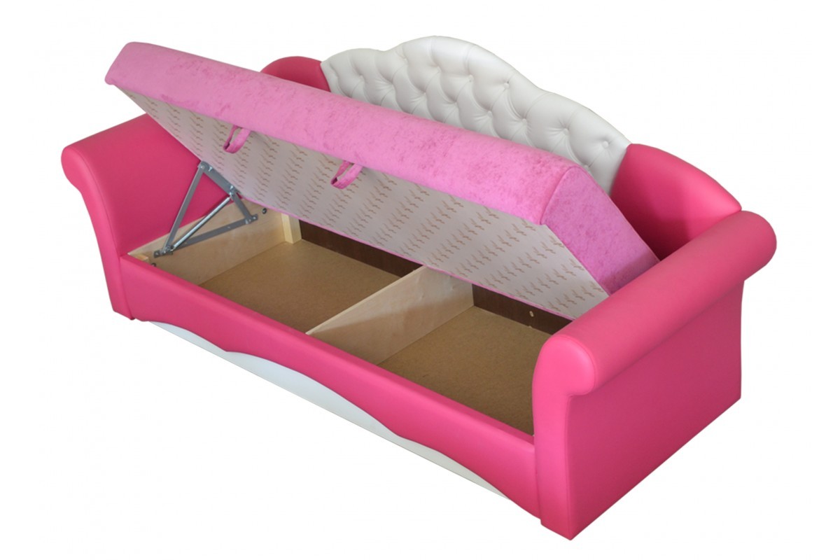 Шикарная тахта в розово-белых тонах - настоящее королевское ложе для девочек от 3 до 18 лет.