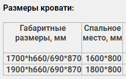 Размеры спального места: 160x80 или 180х80 см - на выбор