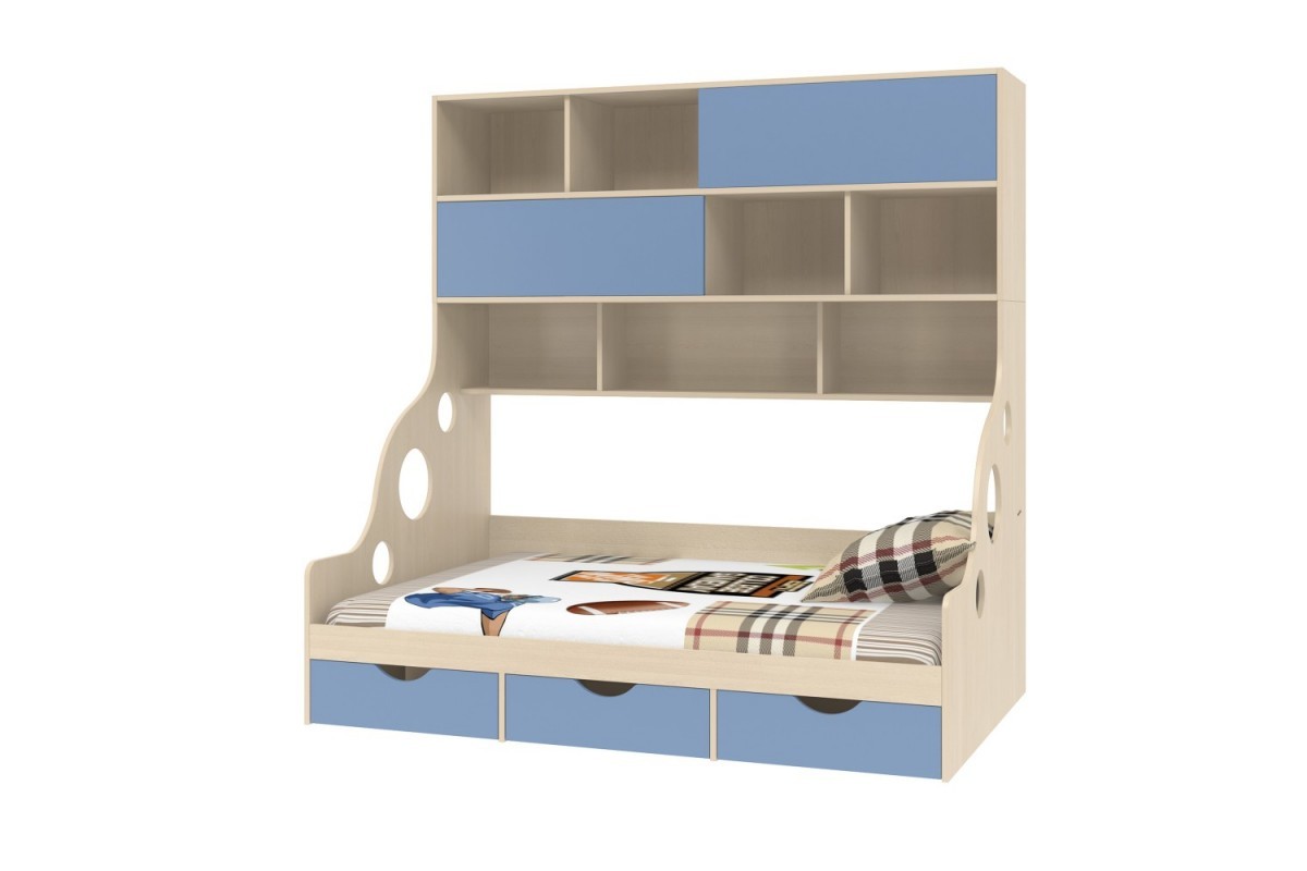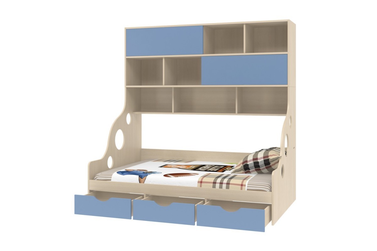 Кровать с антресолью Дельта - 21.02 - это удобный, функциональный комплекс, который состоит из расширенного спального места и блока антресолей. Антресоль состоит из открытых и закрытых за раздвижными дверями ниш, на которых можно разместить различные личные вещи. Под спальным местом расположены три выкатных ящика, в которых удобно хранить постельное белье, обувь или одежду.