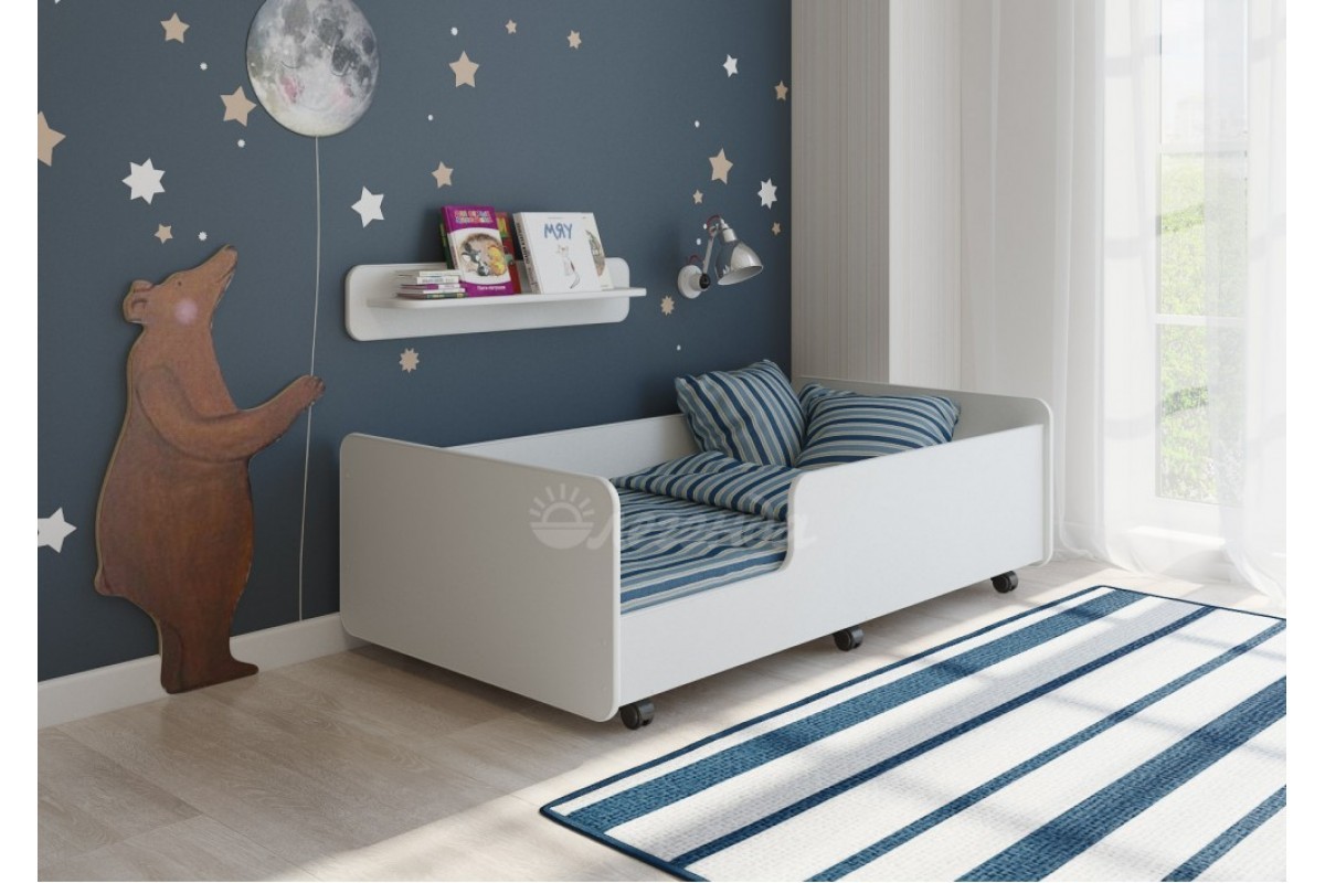 Выкатная кровать Легенда 24 Отличная детская выкатная кровать со спальным местом 1600х800. Кровать легко выдвигается и задвигается с помощью роликовых колёс. Кровать оборудована роликами с фиксацией. Выдвинув кровать,вы без труда зафиксируете её движением ноги. Спальное место располагается в 23см от пола. Благодаря увеличенным бортикам кровати подойдет матрас любой высоты. Специальный проём облегчает спуск с кровати,что немаловажно,особенно,если на кровати спит пожилой человек. Боковые бортики и мягкий противоударный кант – дополнительная безопасность для спящего. По Вашему выбору кровать может быть собрана как на левую, так и на правую сторону. |