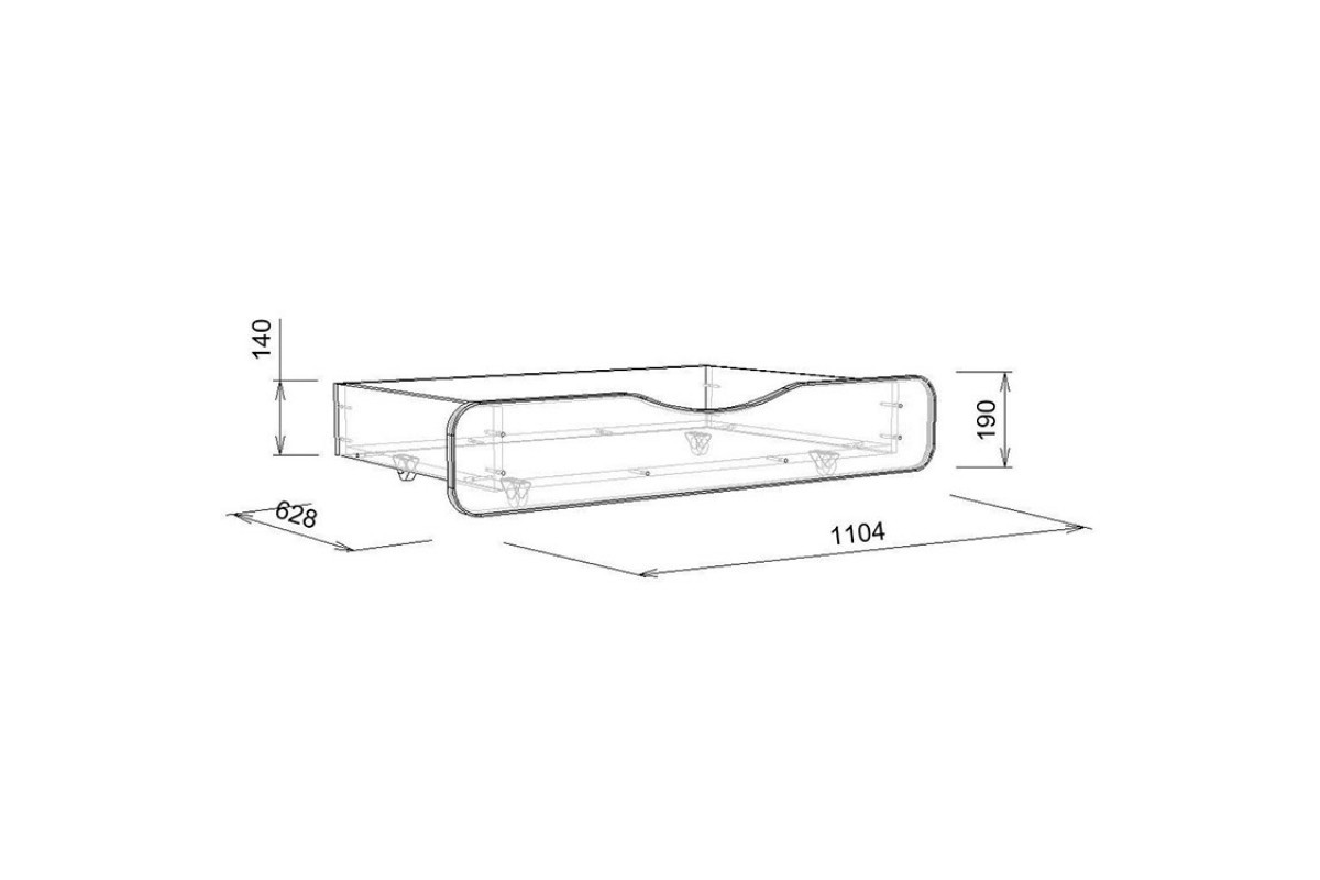 Ящик Л-07 размером 1104х628х200 отлично помещается под нижний ярус,удобно выкатывается и закатывается,так как оборудован колёсиками. Ящик – лучшее решение в организации хранения игрушек,белья или иных вещей.