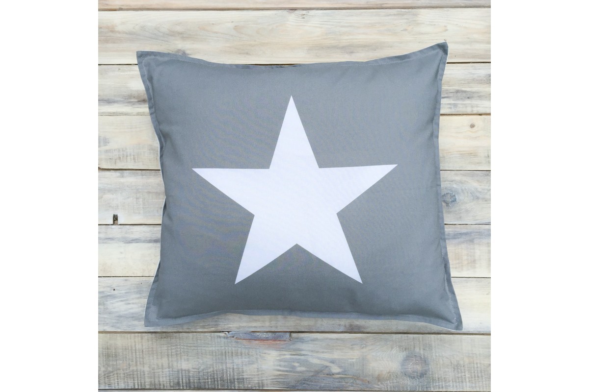 Декоративная подушка "Star №2" - ручная работа, на подушке изображена большая белая звезда на сером фоне.