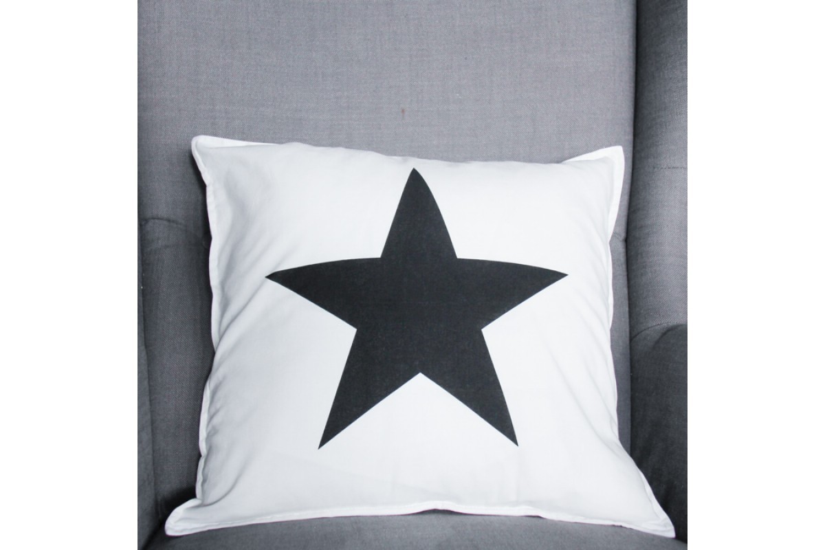 Декоративная подушка "Star №3" - ручная работа, на подушке изображена большая черная звезда на белом фоне.
